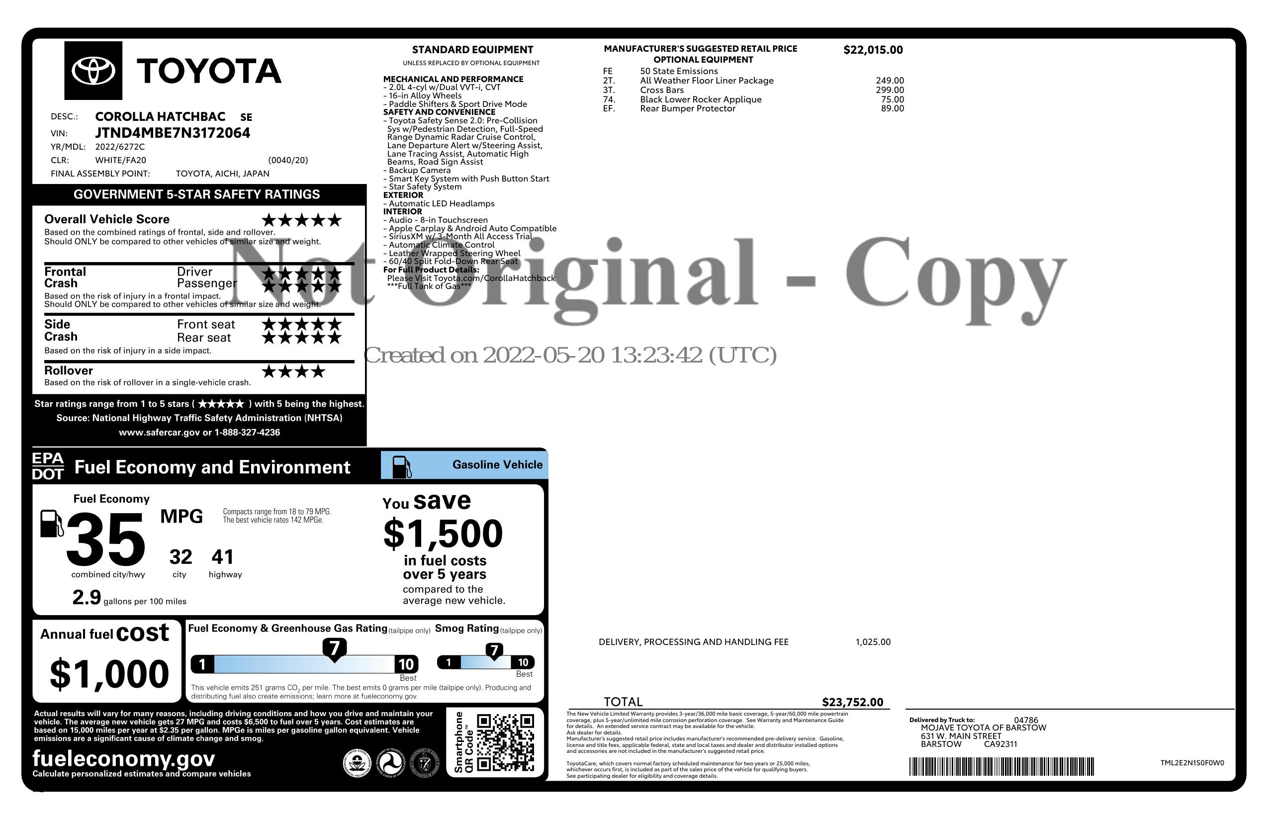 2022 Toyota Corolla Hatchback Cvt (Natl)