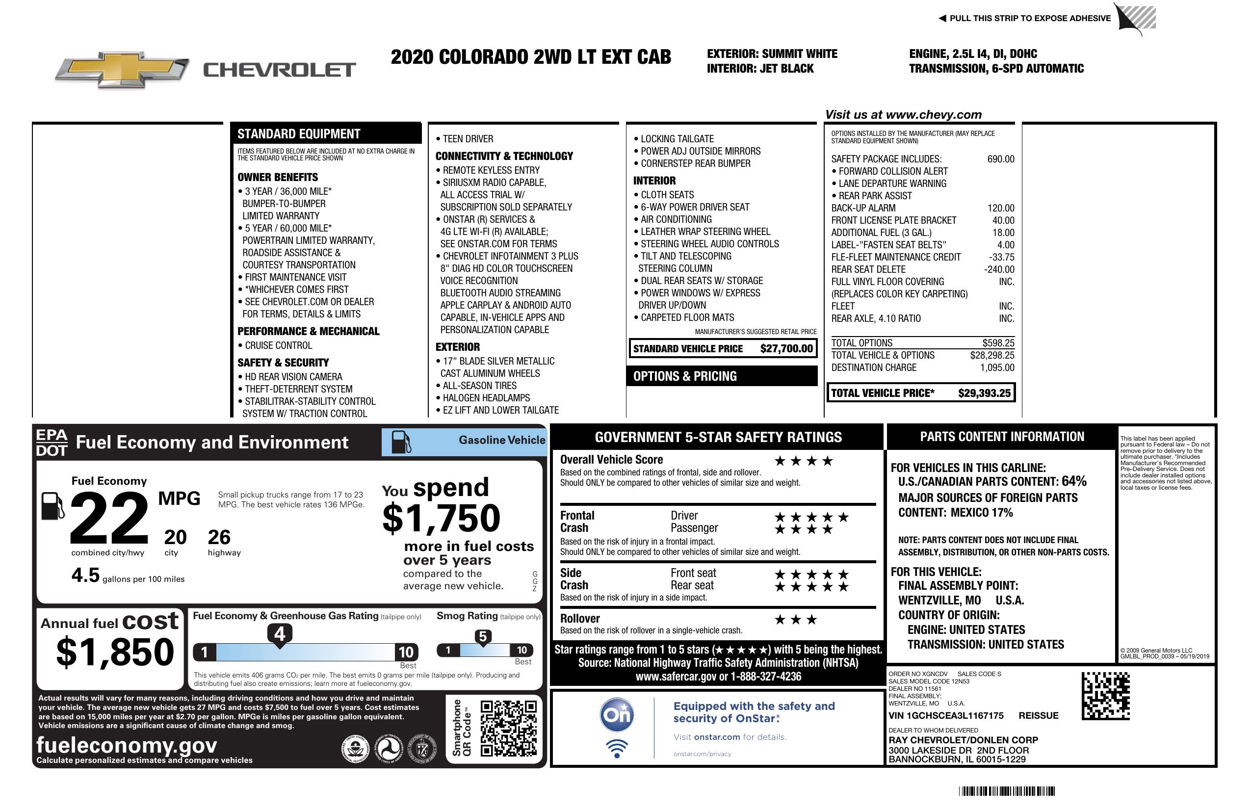 2020 Chevrolet Colorado 2 Wd Ext Cab 128" Lt