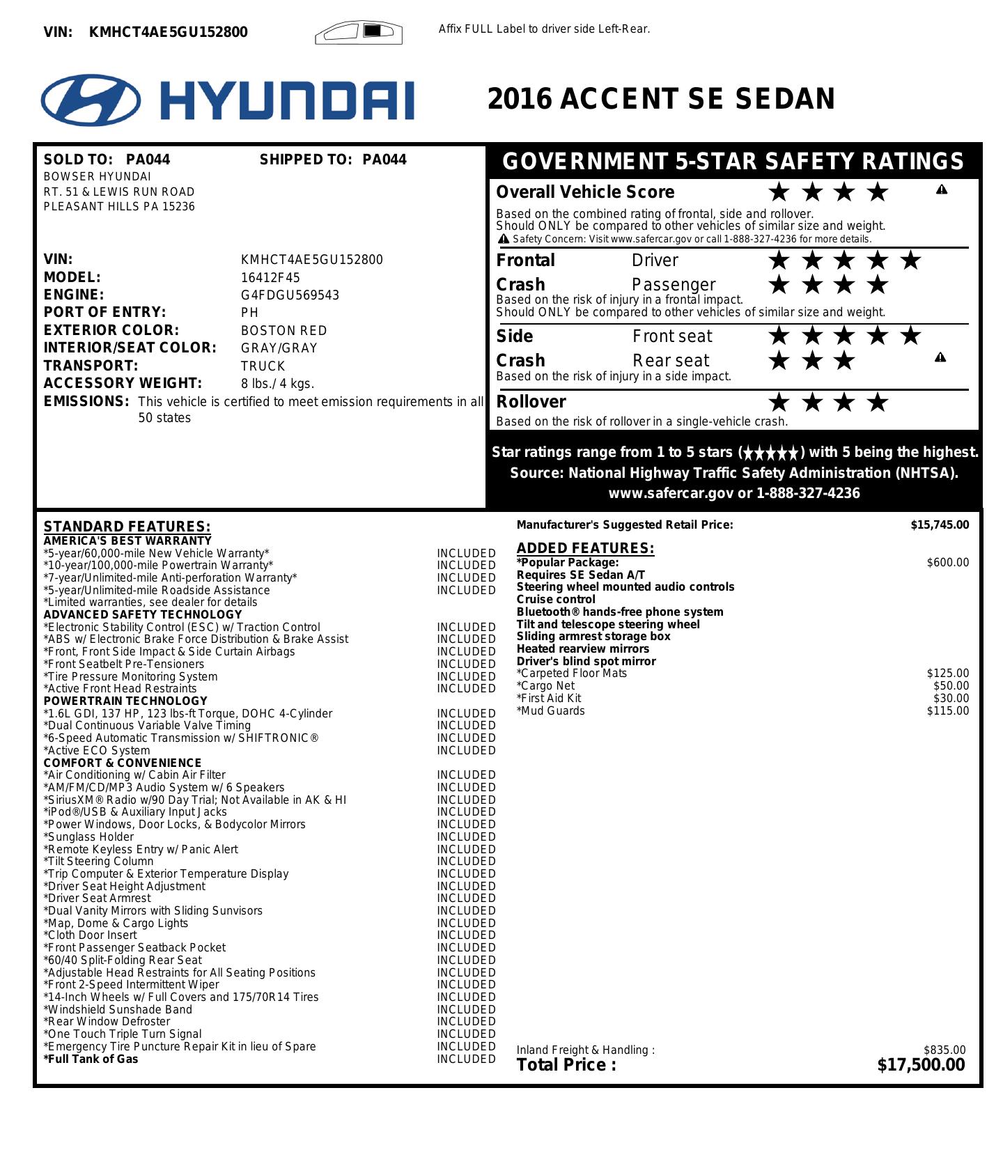 2016 Hyundai Accent 4dr Sdn Auto Se