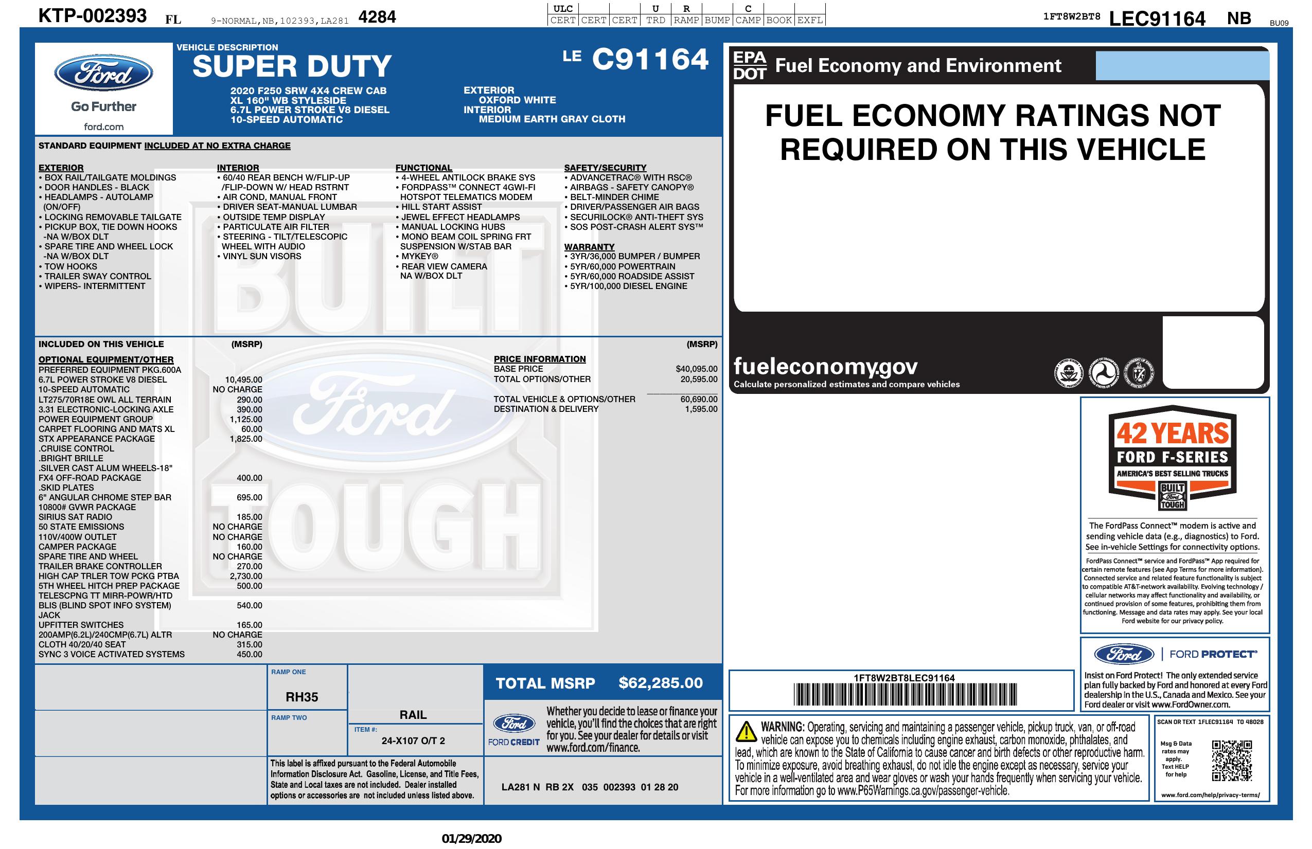 2020 Ford Super Duty F 250 Srw 4x4 Xl 4dr Crew Cab 6.8 Ft. Sb Pickup