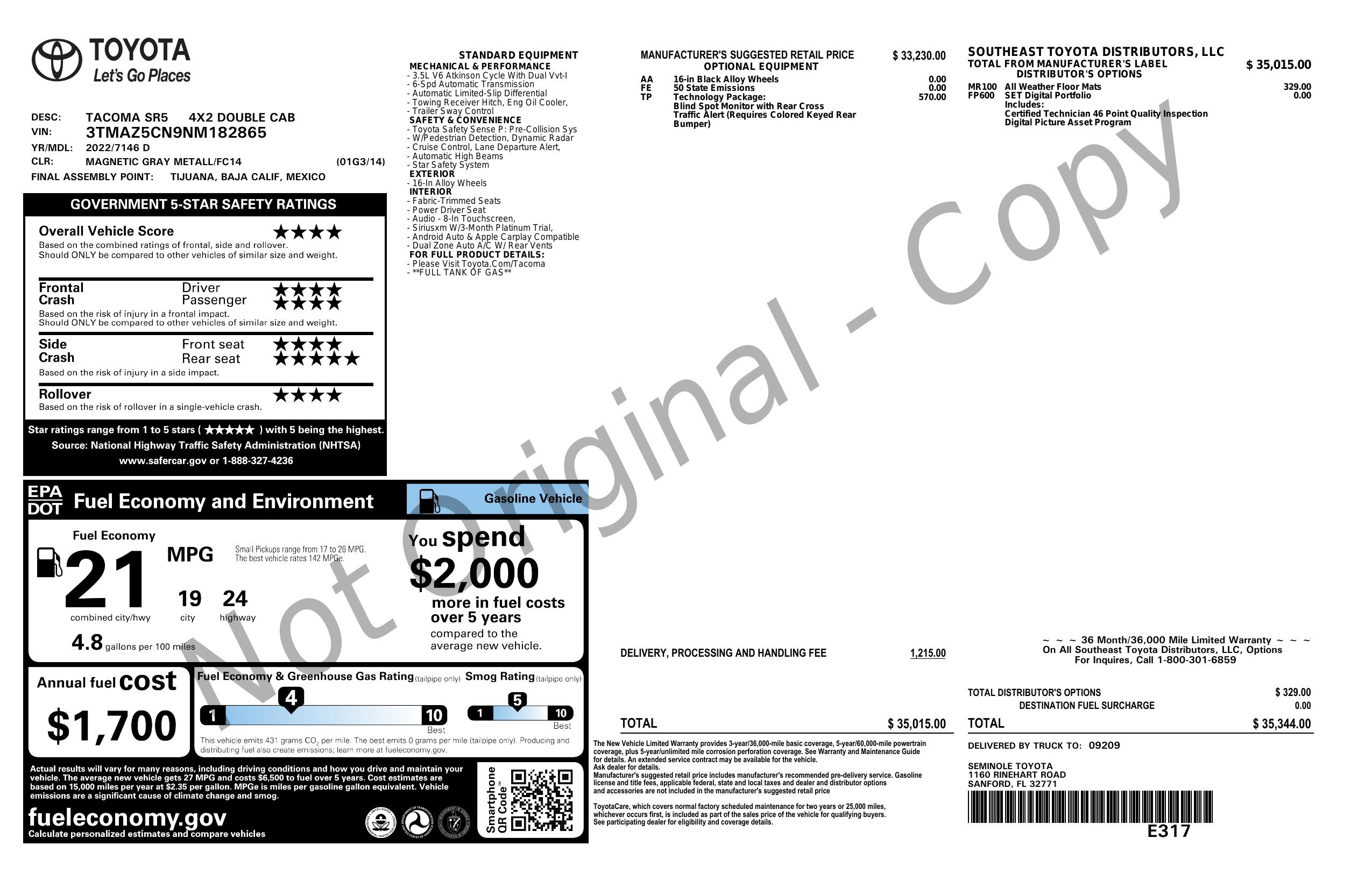 2022 Toyota Tacoma 2 Wd Double Cab 5' Bed V6 At (Natl)