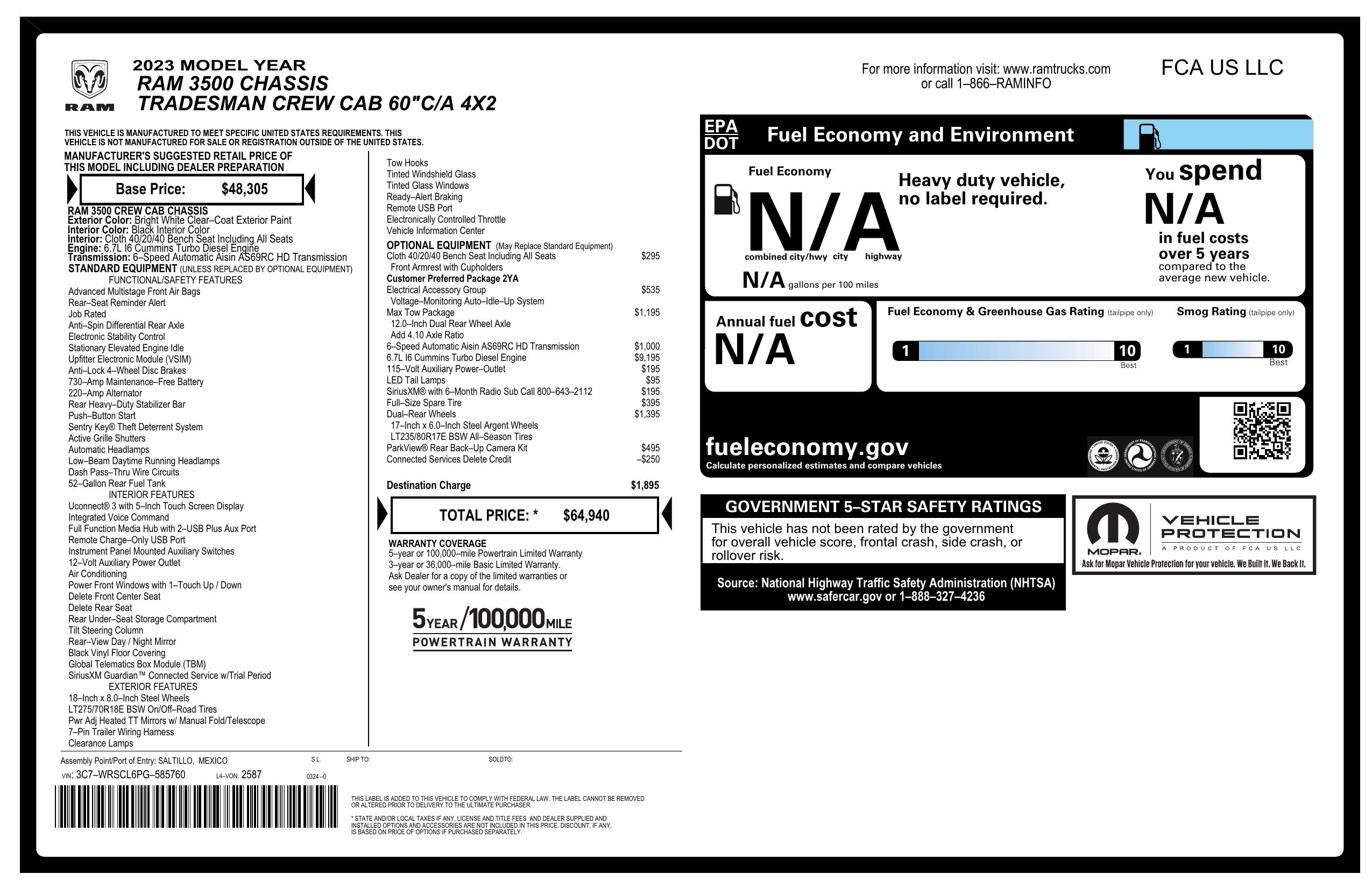 2023 Ram 3500 Chassis Cab Tradesman 2 Wd Crew Cab 60" Ca 172.4" Wb