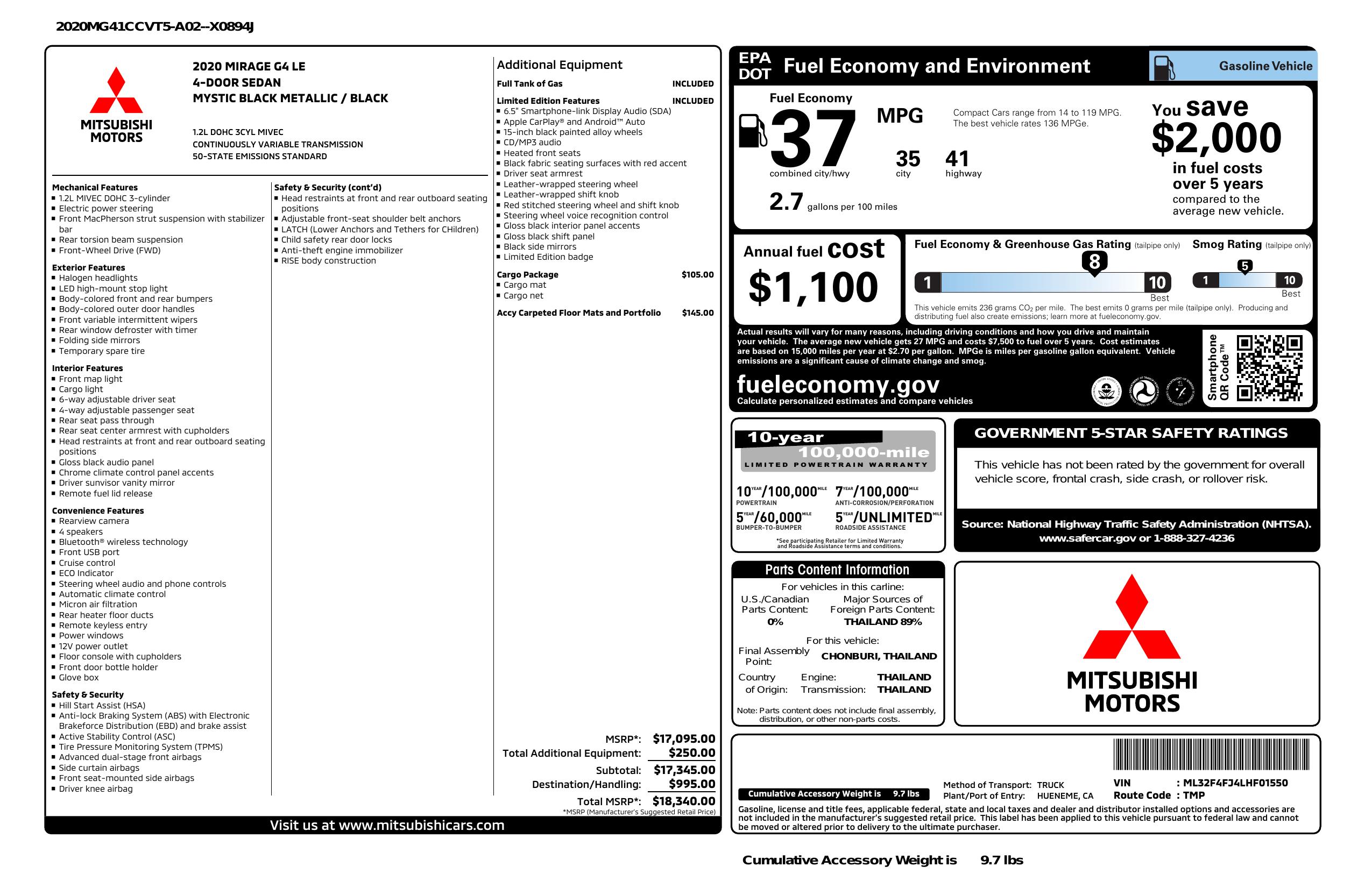 2020 Mitsubishi Mirage G4 Cvt