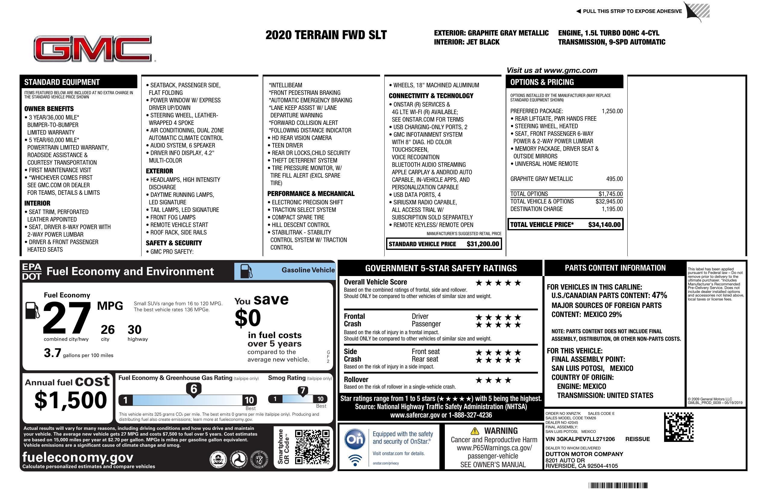 2020 GMC Terrain Fwd 4dr Slt