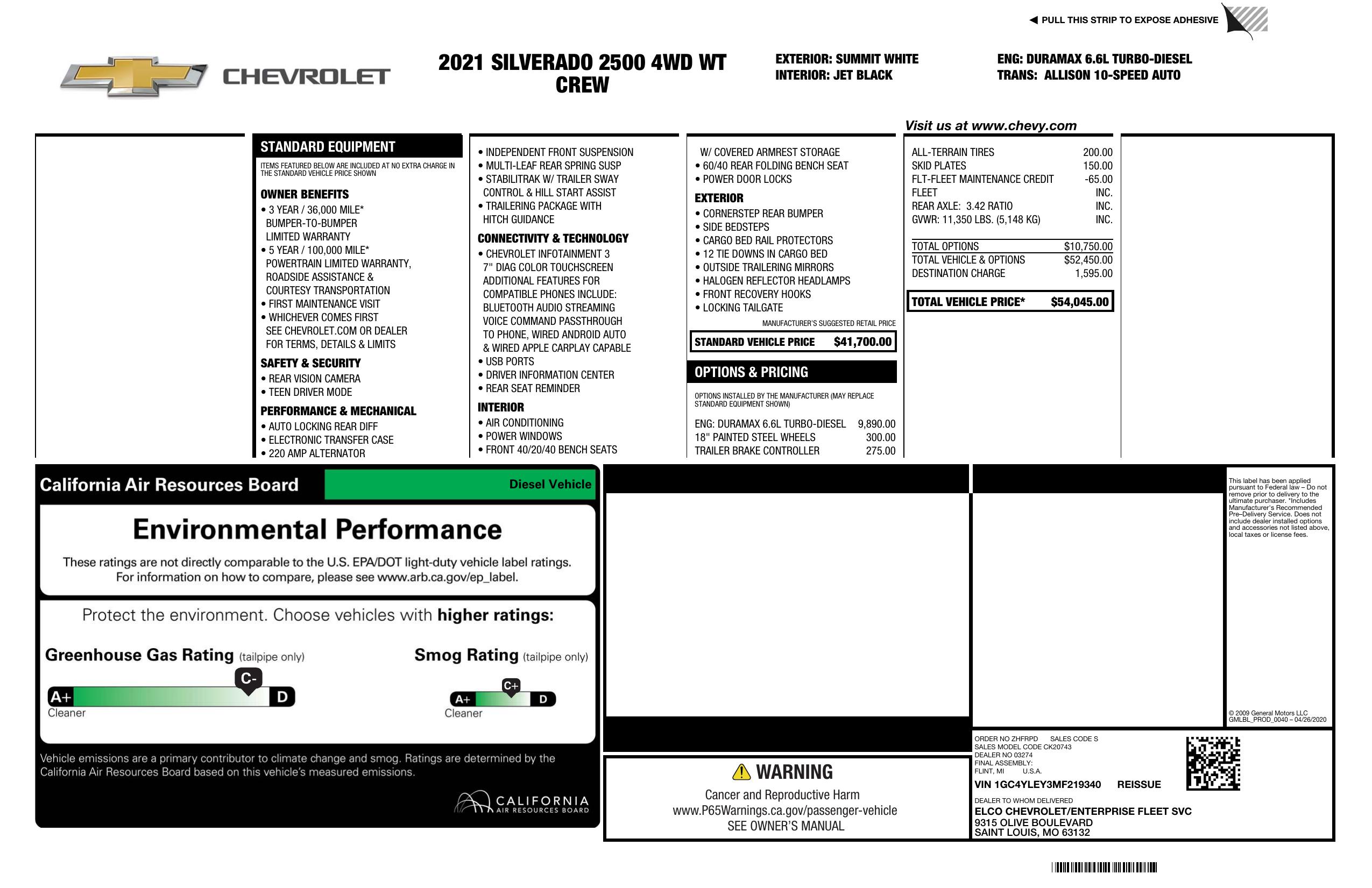2021 Chevrolet Silverado 2500 Hd 4 Wd Crew Cab 159" Work Truck