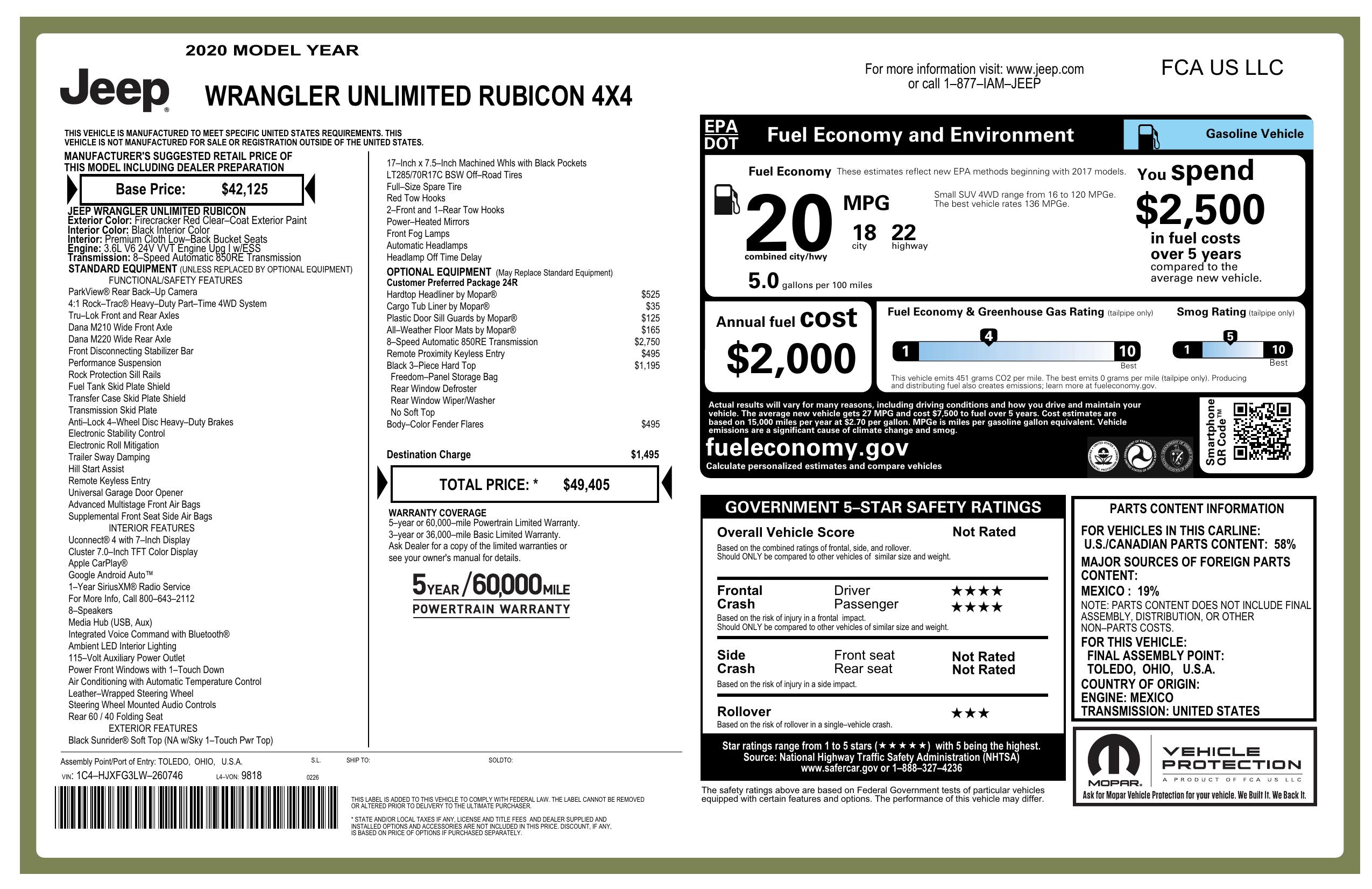 2020 Jeep Wrangler Unlimited Rubicon 4x4
