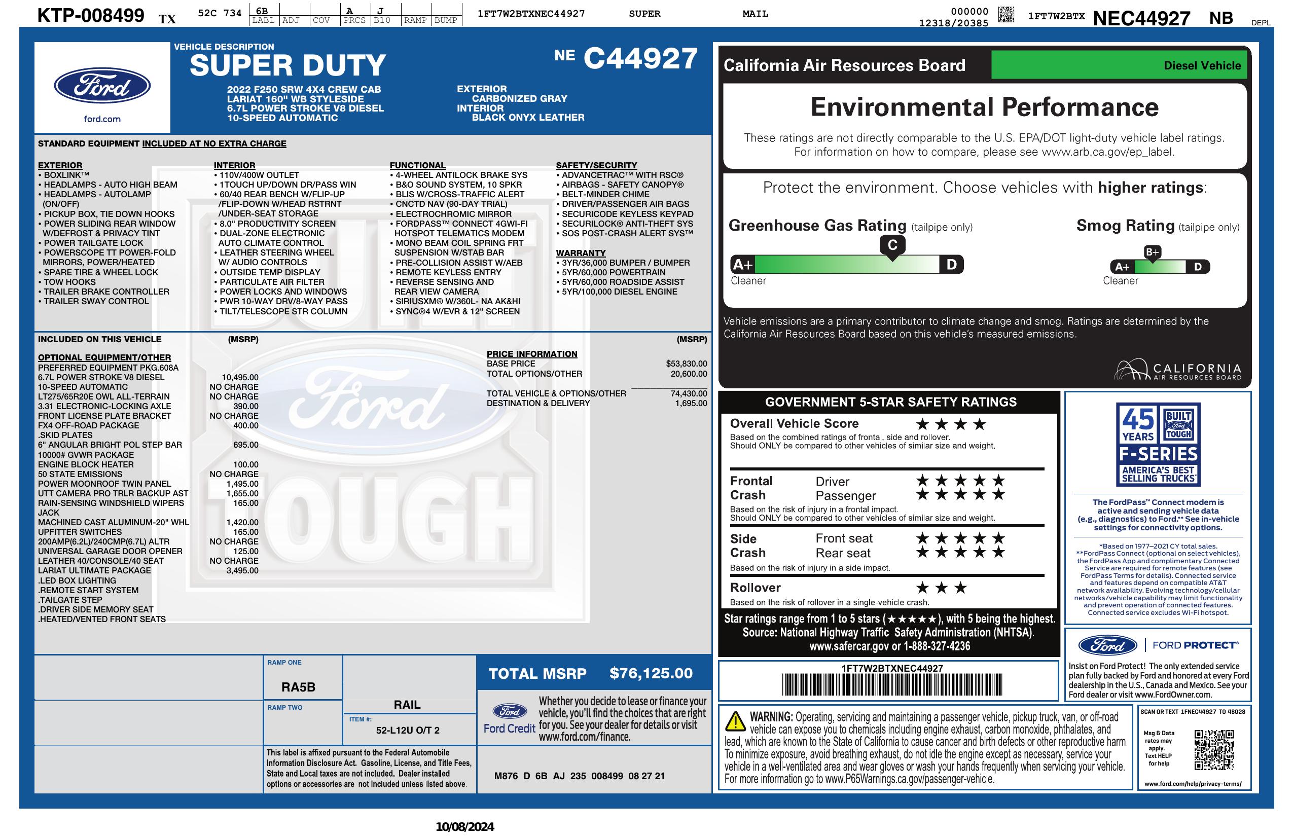 2022 Ford Super Duty F 250 Srw 4x4 Lariat 4dr Crew Cab 6.8 Ft. Sb Pickup