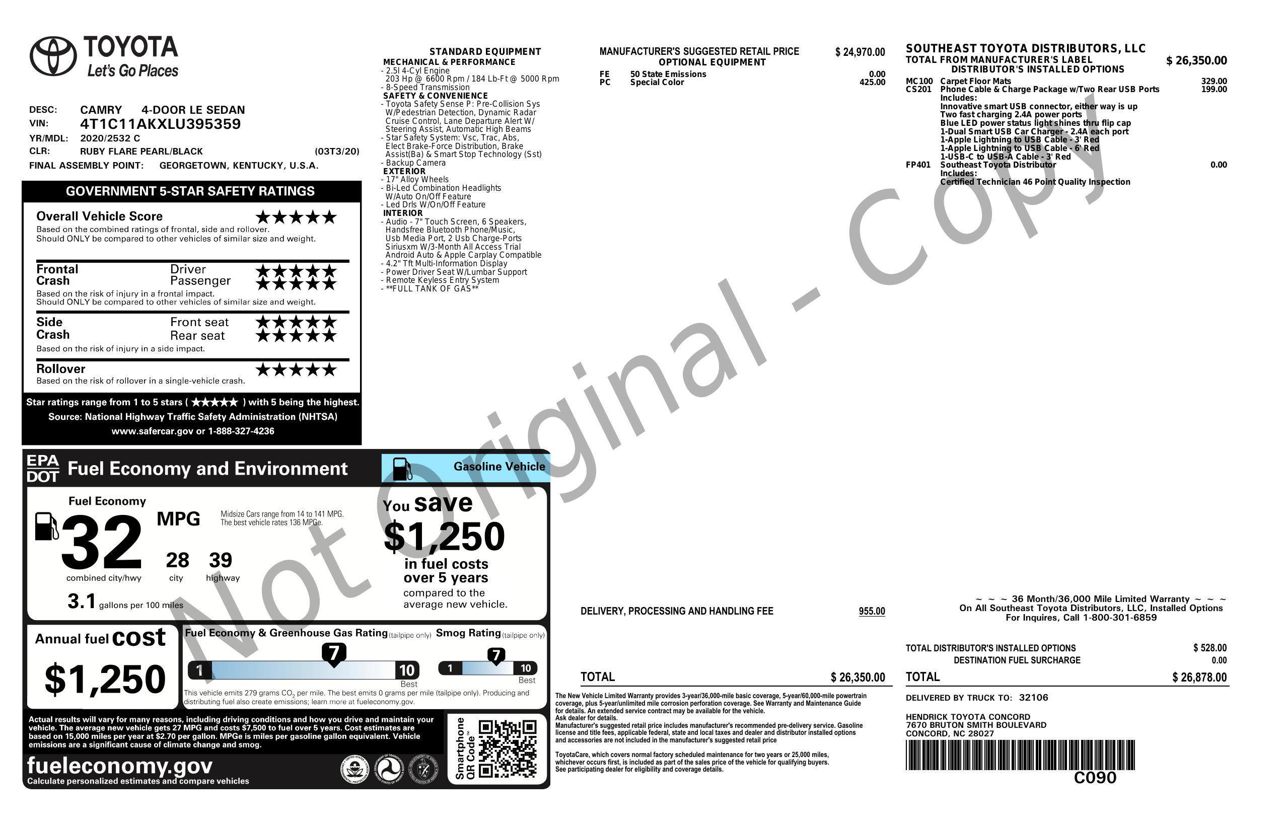 2020 Toyota Camry Le Auto (Natl)