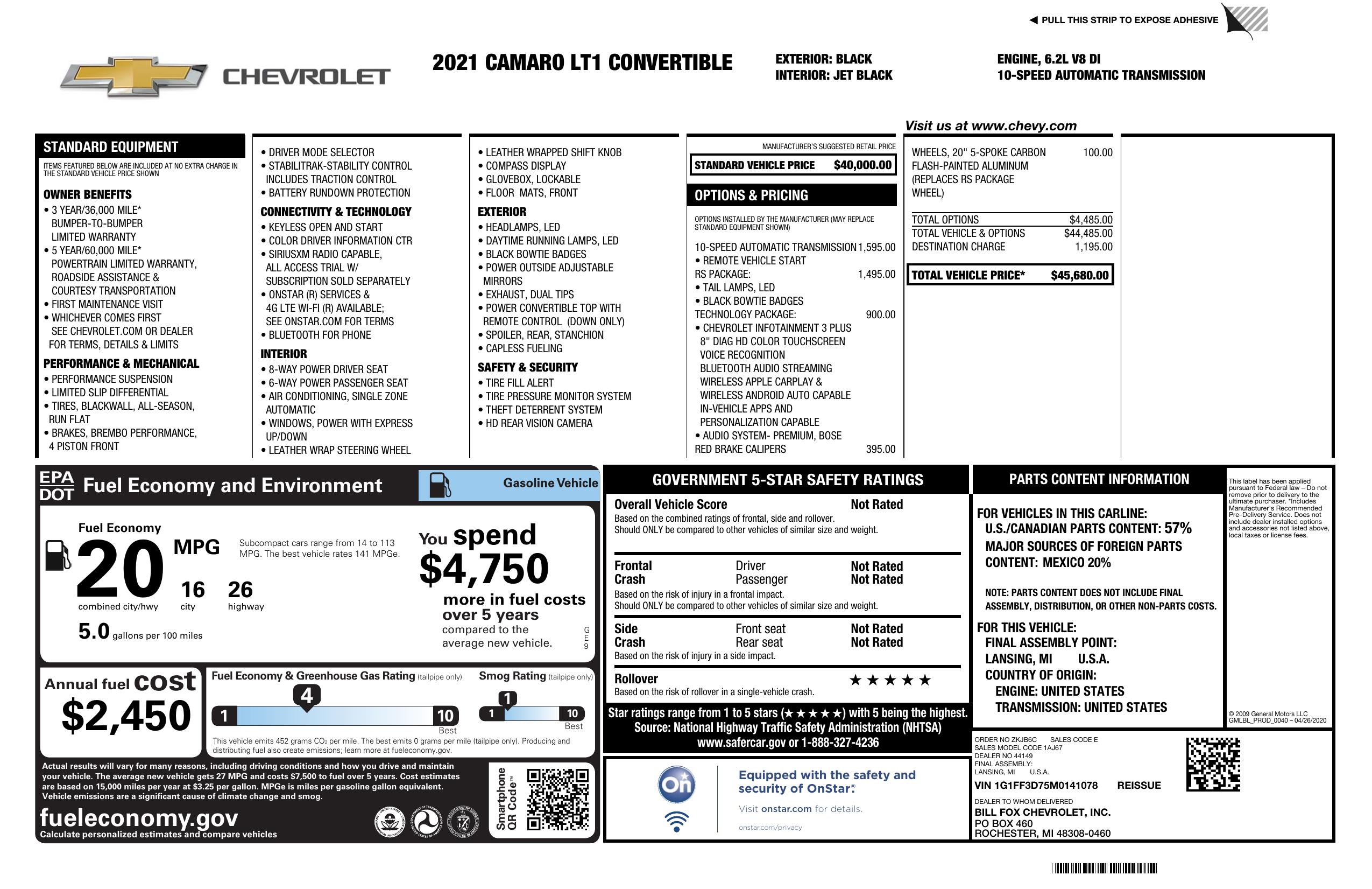 2021 Chevrolet Camaro 2dr Conv Lt1