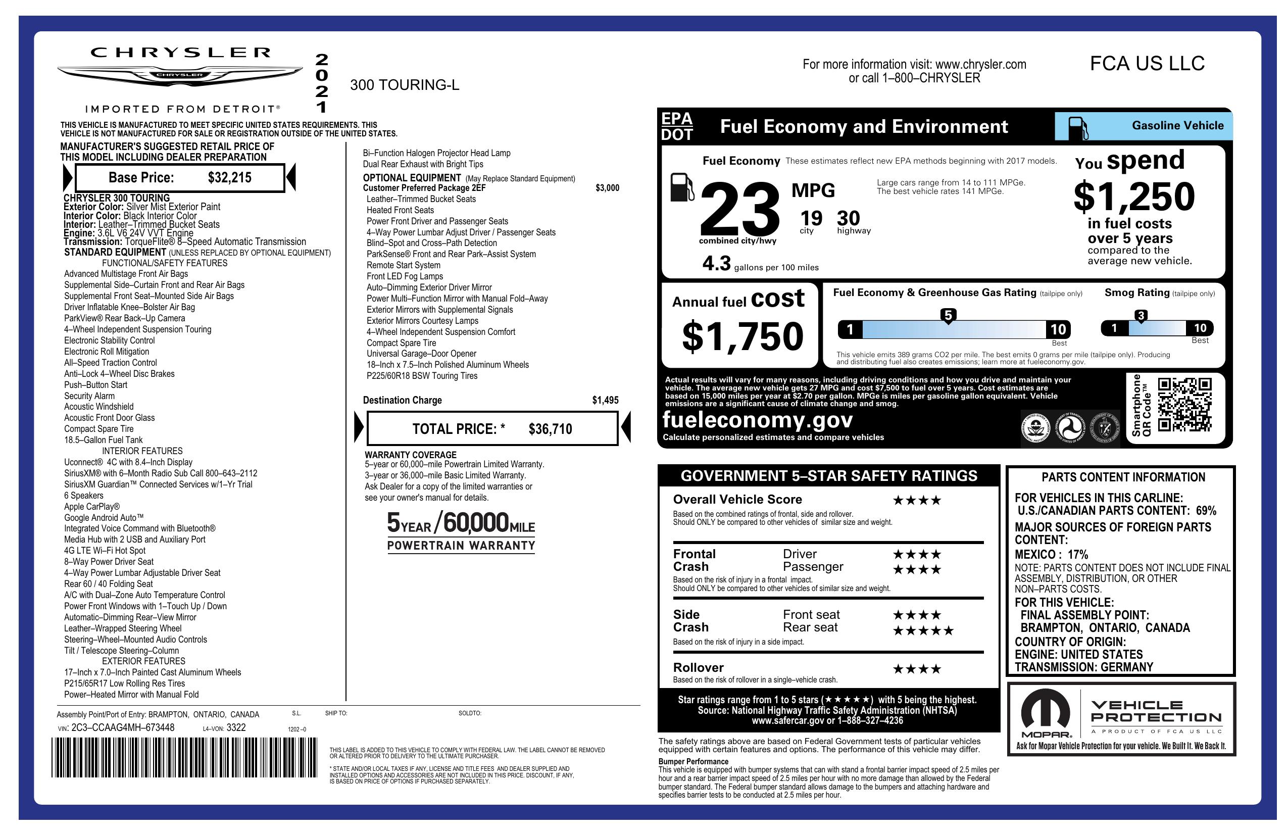2021 Chrysler 300 Touring L Rwd