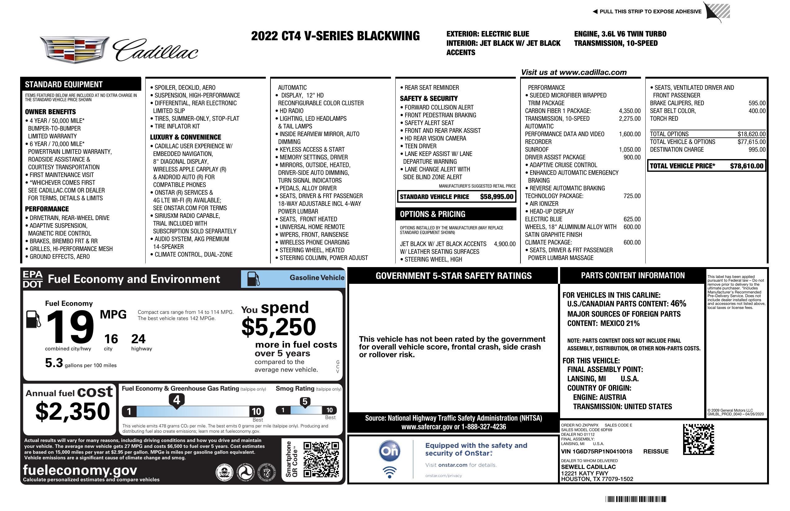 2022 Cadillac Ct4 V 4dr Sdn Blackwing