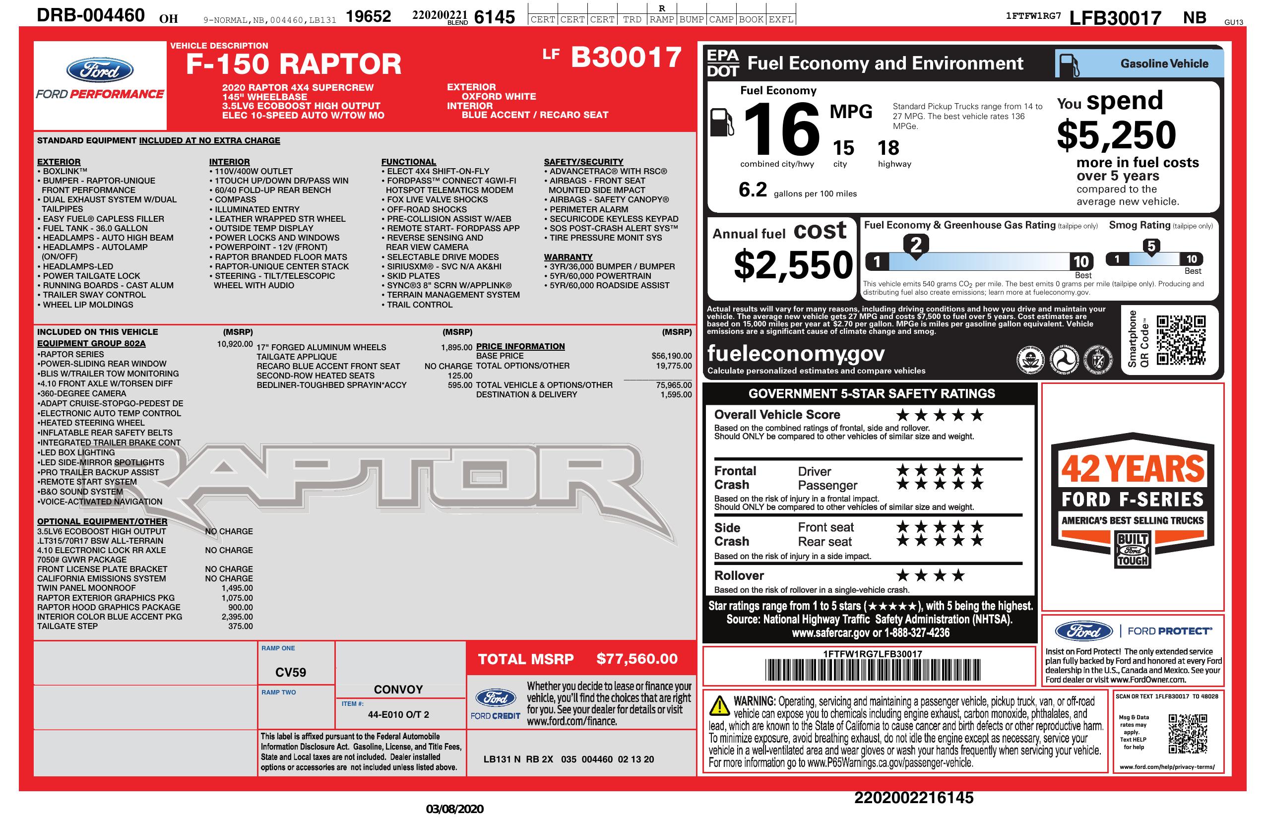 2020 Ford F 150 Raptor 4 Wd Super Crew 5.5' Box
