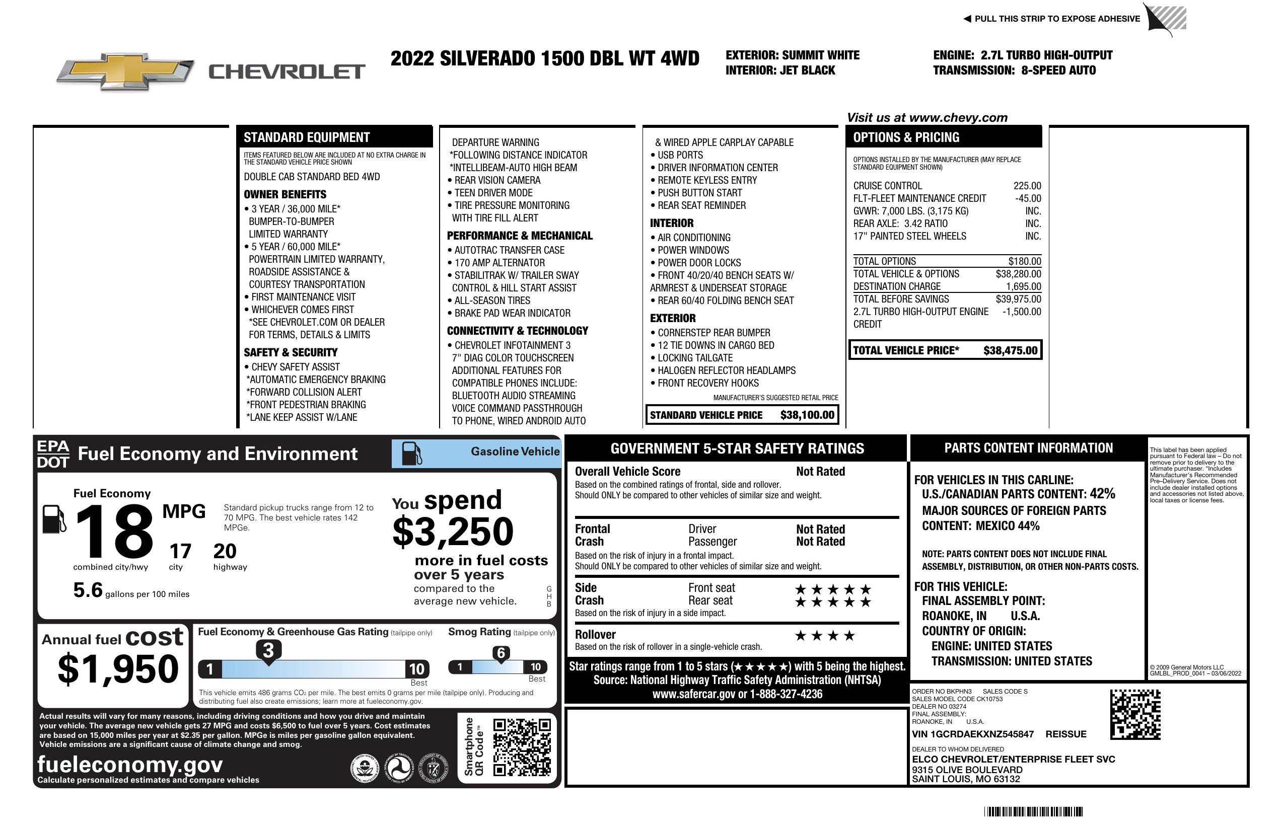 IMPORTANT NOTICE: The vehicle described above is a used vehicle. This Original Window Sticker was created by a third party vendor based on information set forth in the original new vehicle Monroney sticker. Dealer makes no representations or warranties, express or implied, as to the accuracy or reliability of the information in this window sticker, and is not responsible for any errors or omissions or missing, damaged, removed or third-party installed equipment/options. For current vehicle features and price, please review the Enterprise Car Sales website, the Used Car Buyer’s Guide and/or discuss with your Enterprise Car Sales dealership.