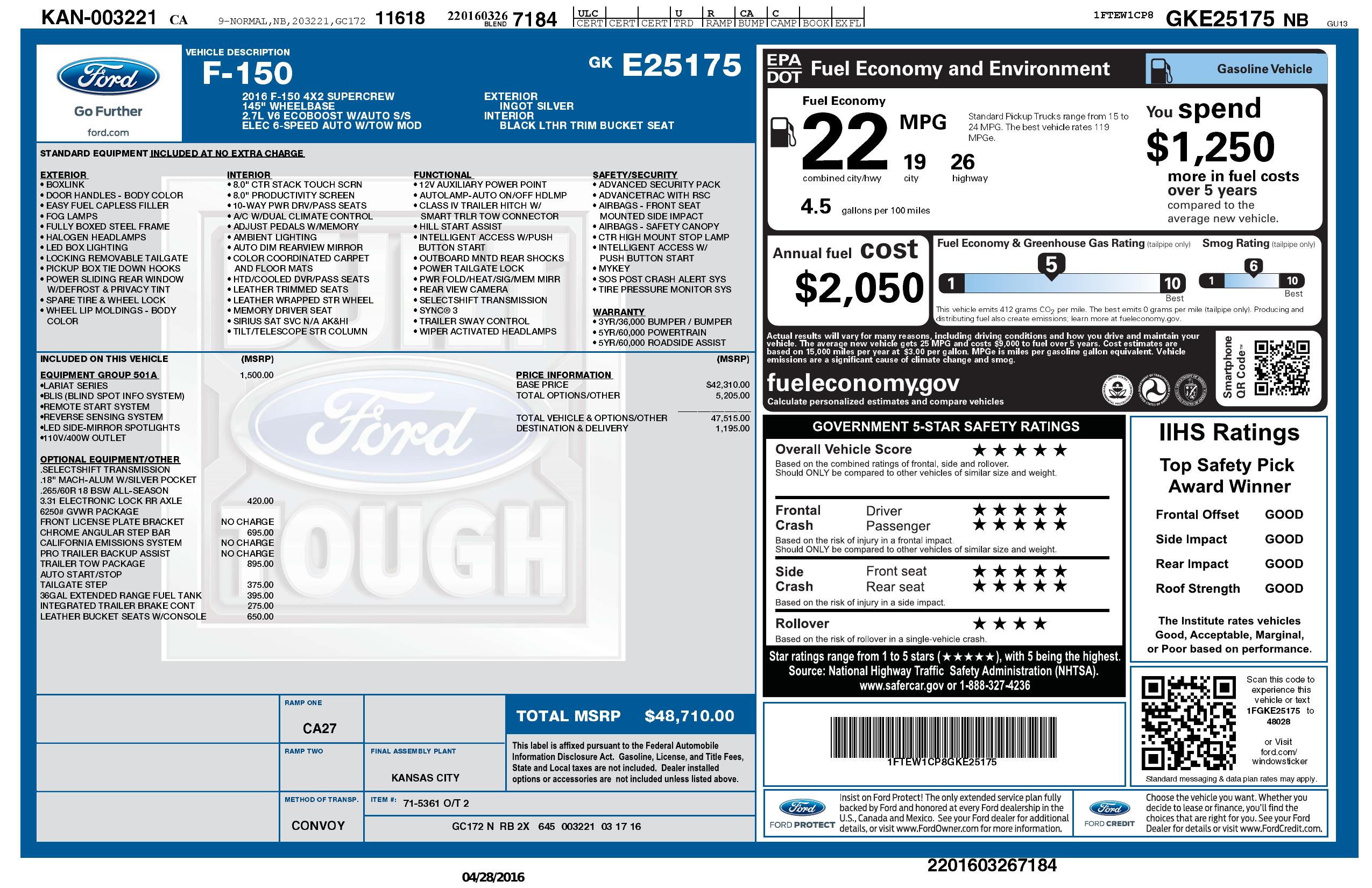 2016 Ford F 150 4x2 Lariat 4dr Super Crew 5.5 Ft. Sb