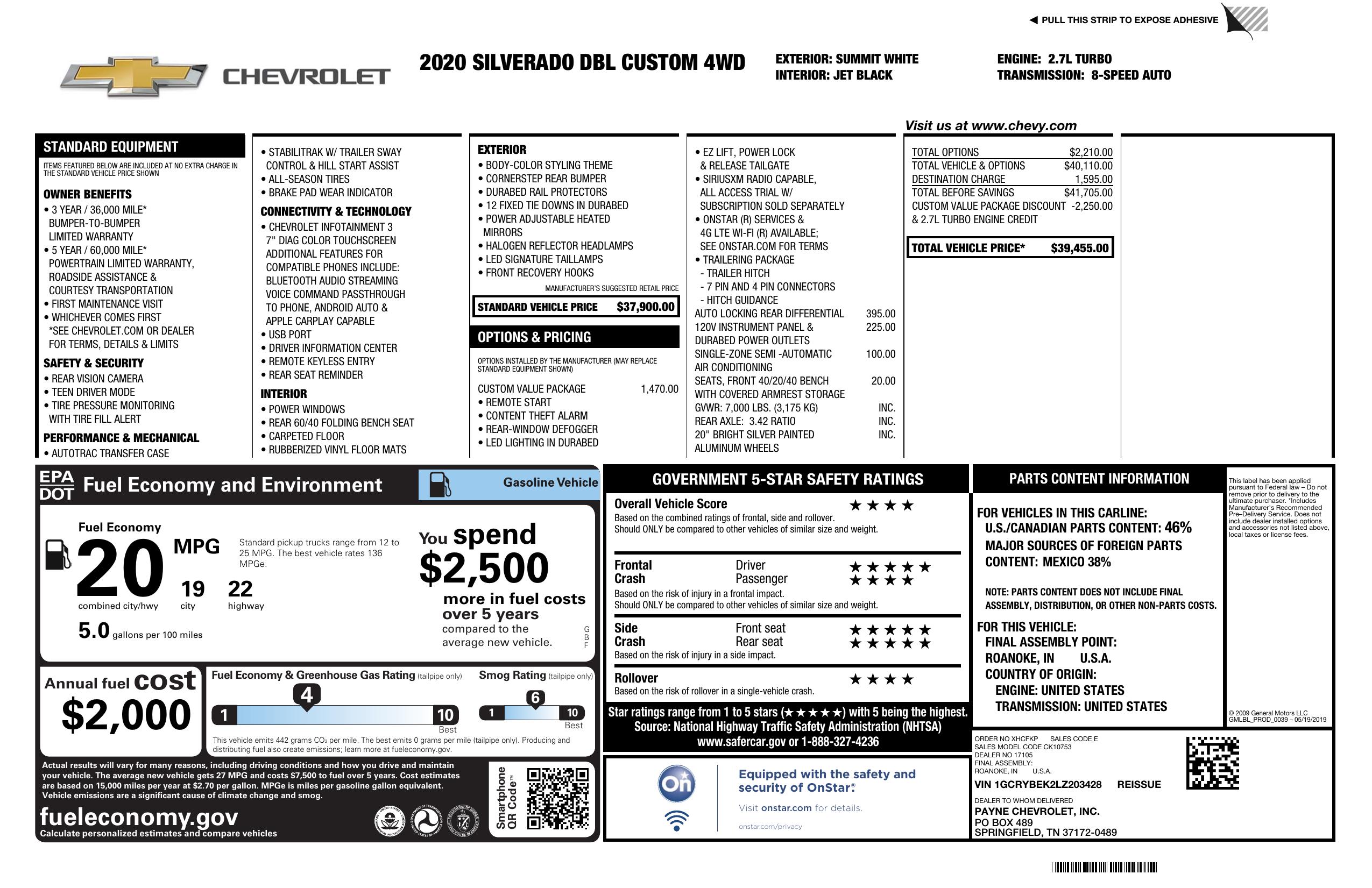 2020 Chevrolet Silverado 1500 4 Wd Double Cab 147" Custom