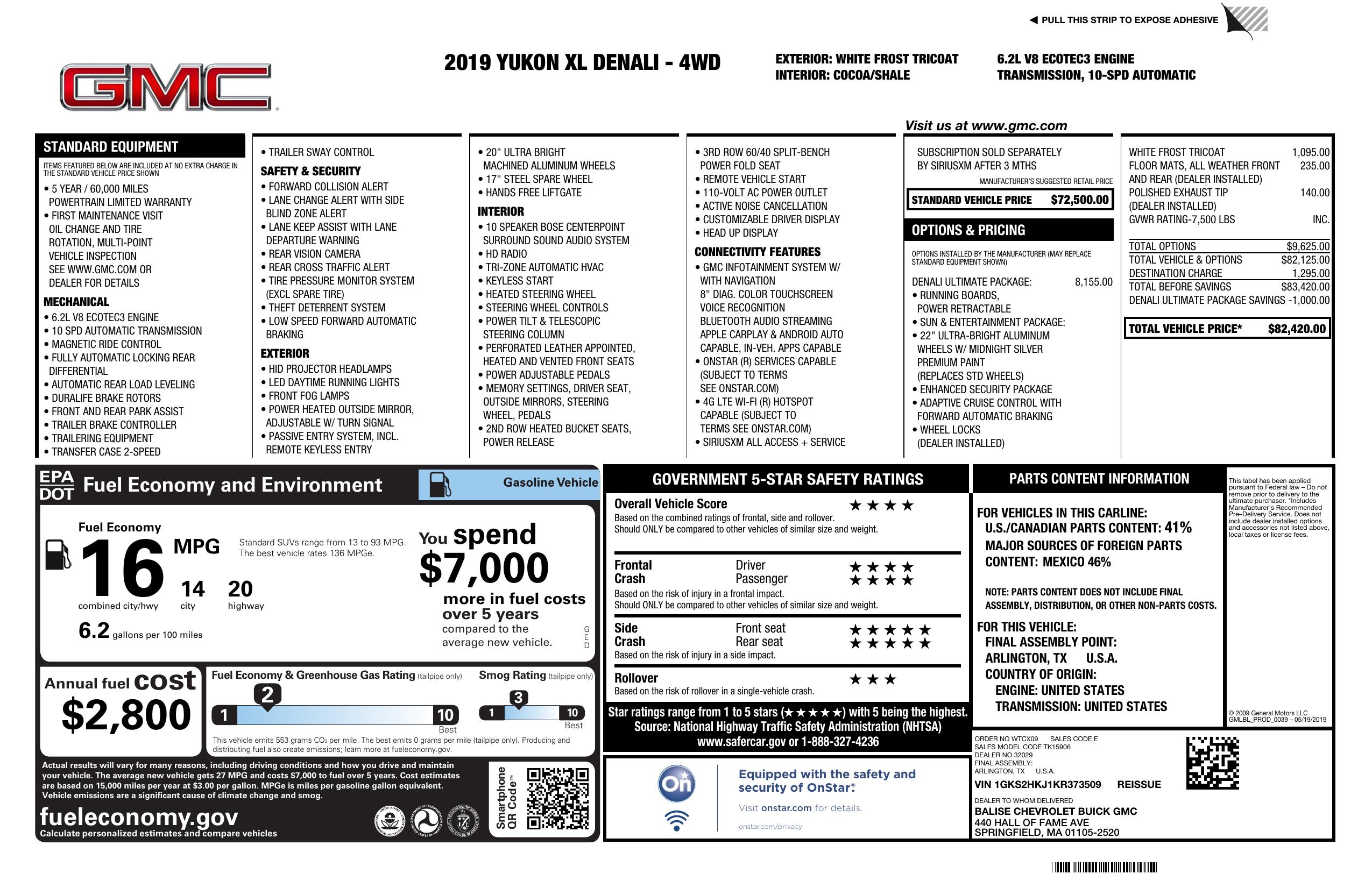 2019 GMC Yukon Xl 4 Wd 4dr Denali