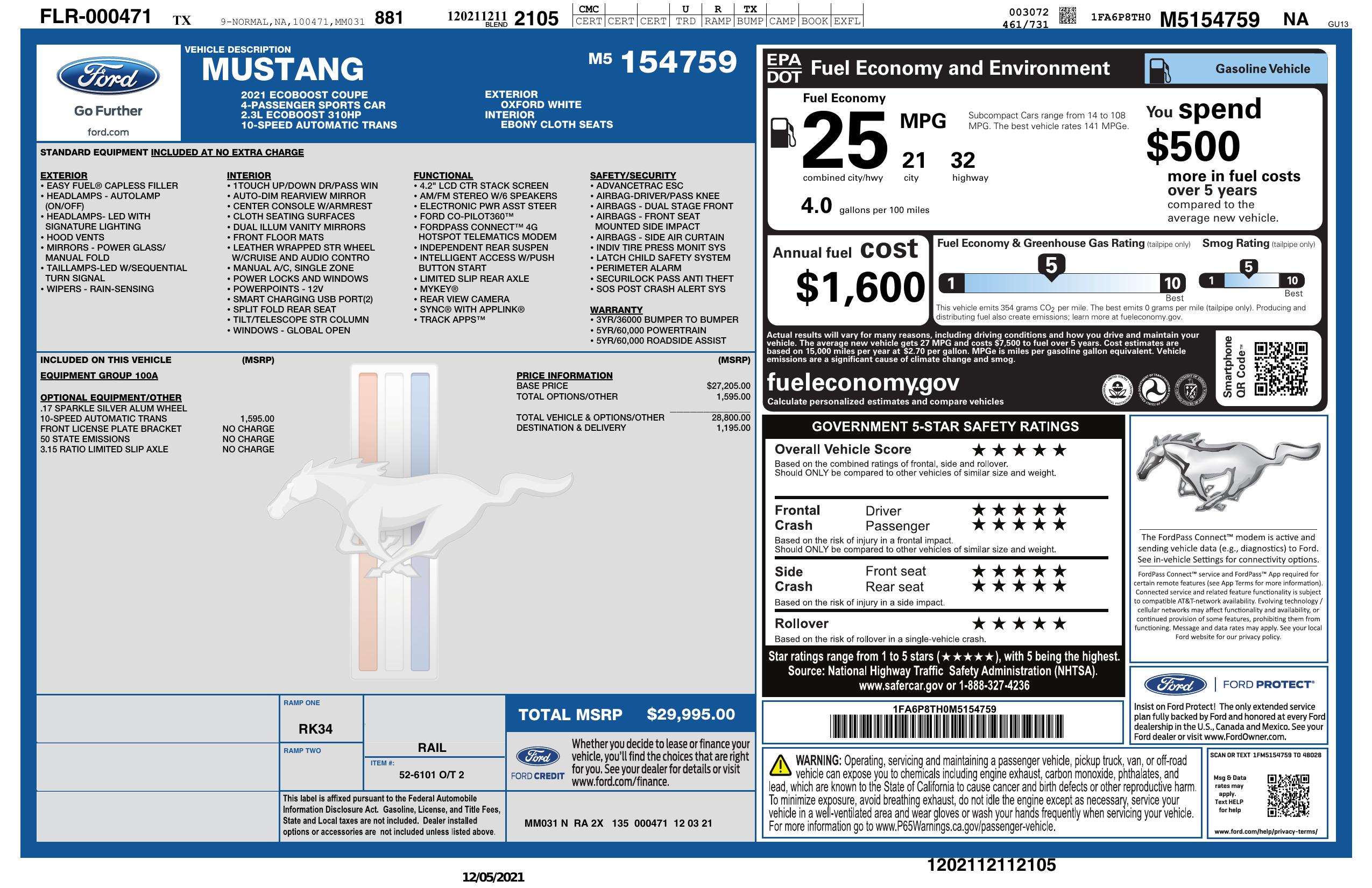 2021 Ford Mustang Eco Boost 2dr Fastback