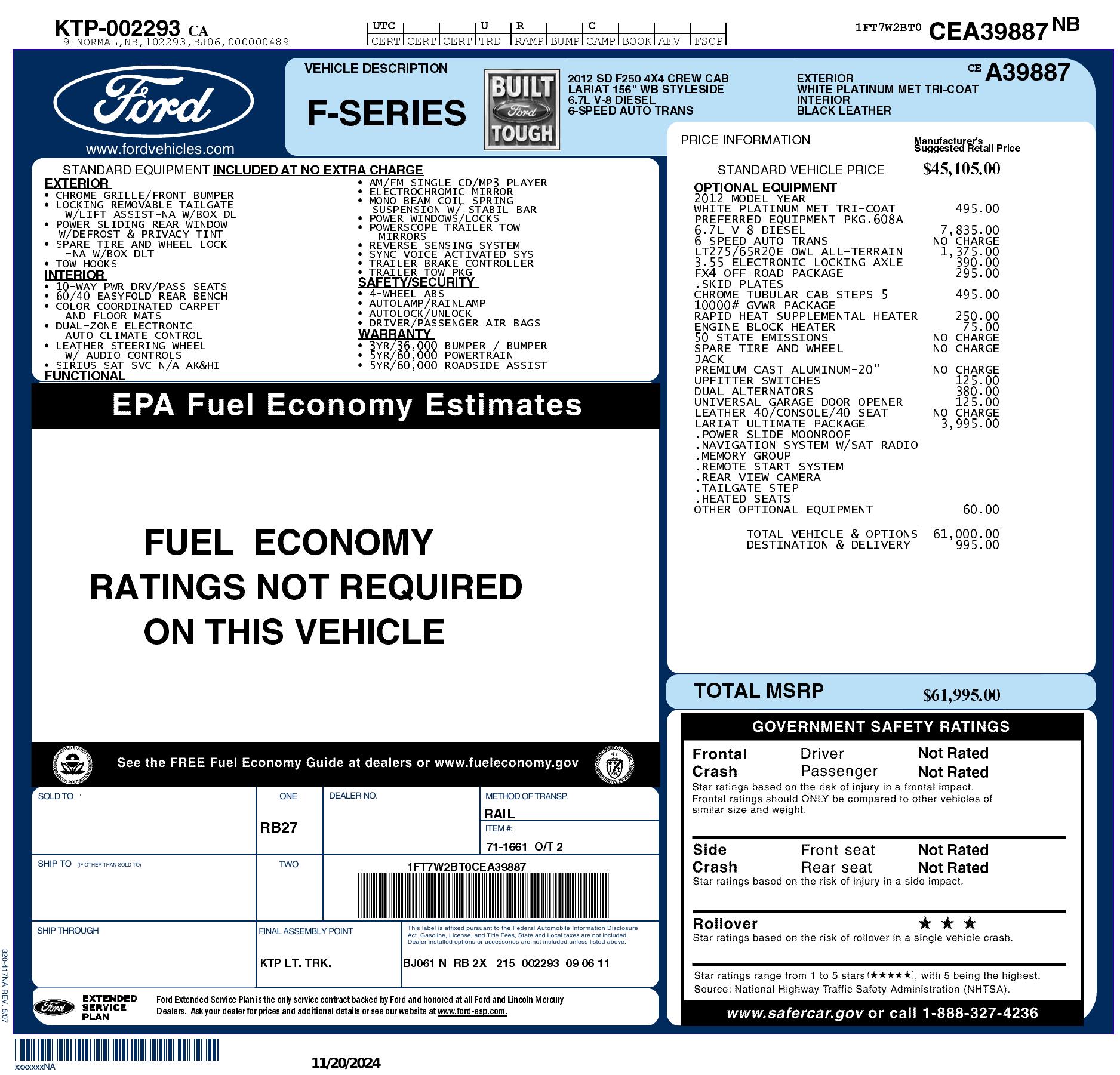 2012 Ford Super Duty F 250 Srw 4 Wd Crew Cab