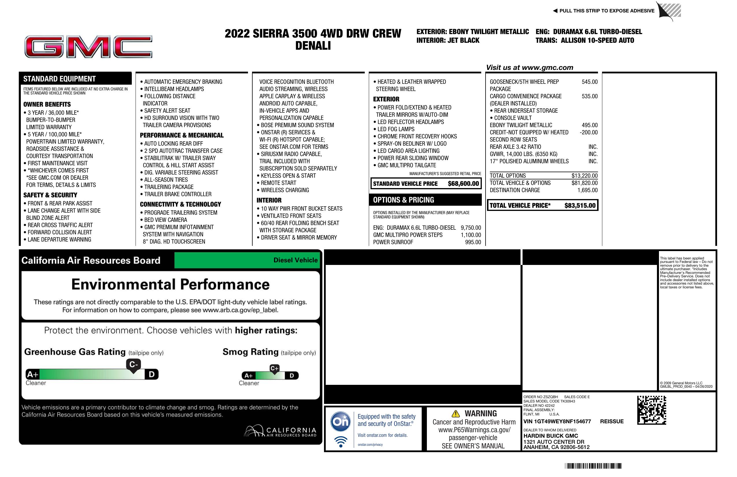 2022 GMC Sierra 3500 Hd 4 Wd Crew Cab 172" Denali