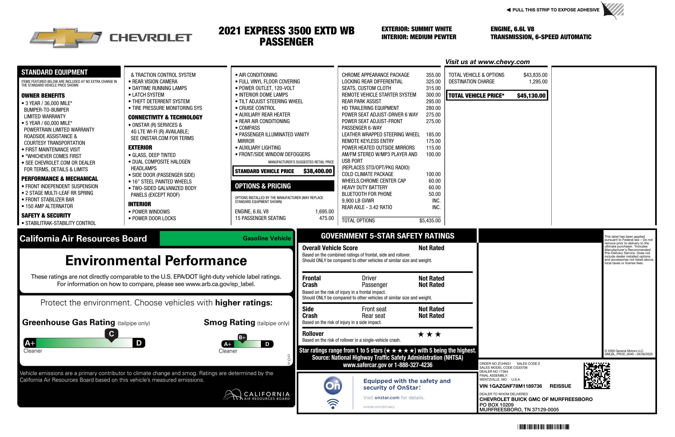 2021 Chevrolet Express Passenger Rwd 3500 155" Ls