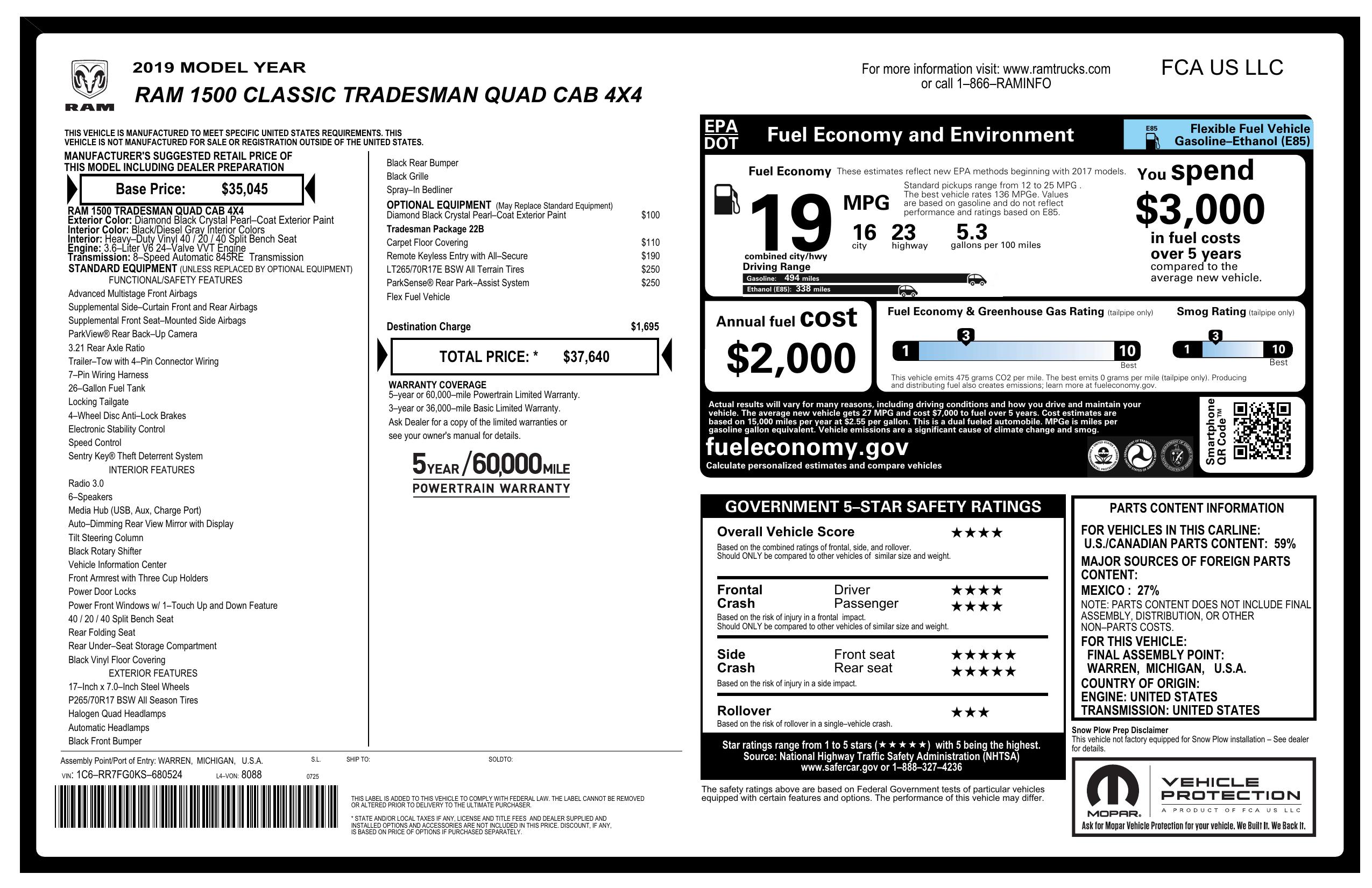 2019 Ram 1500 Classic Tradesman 4x4 Quad Cab 6'4" Box