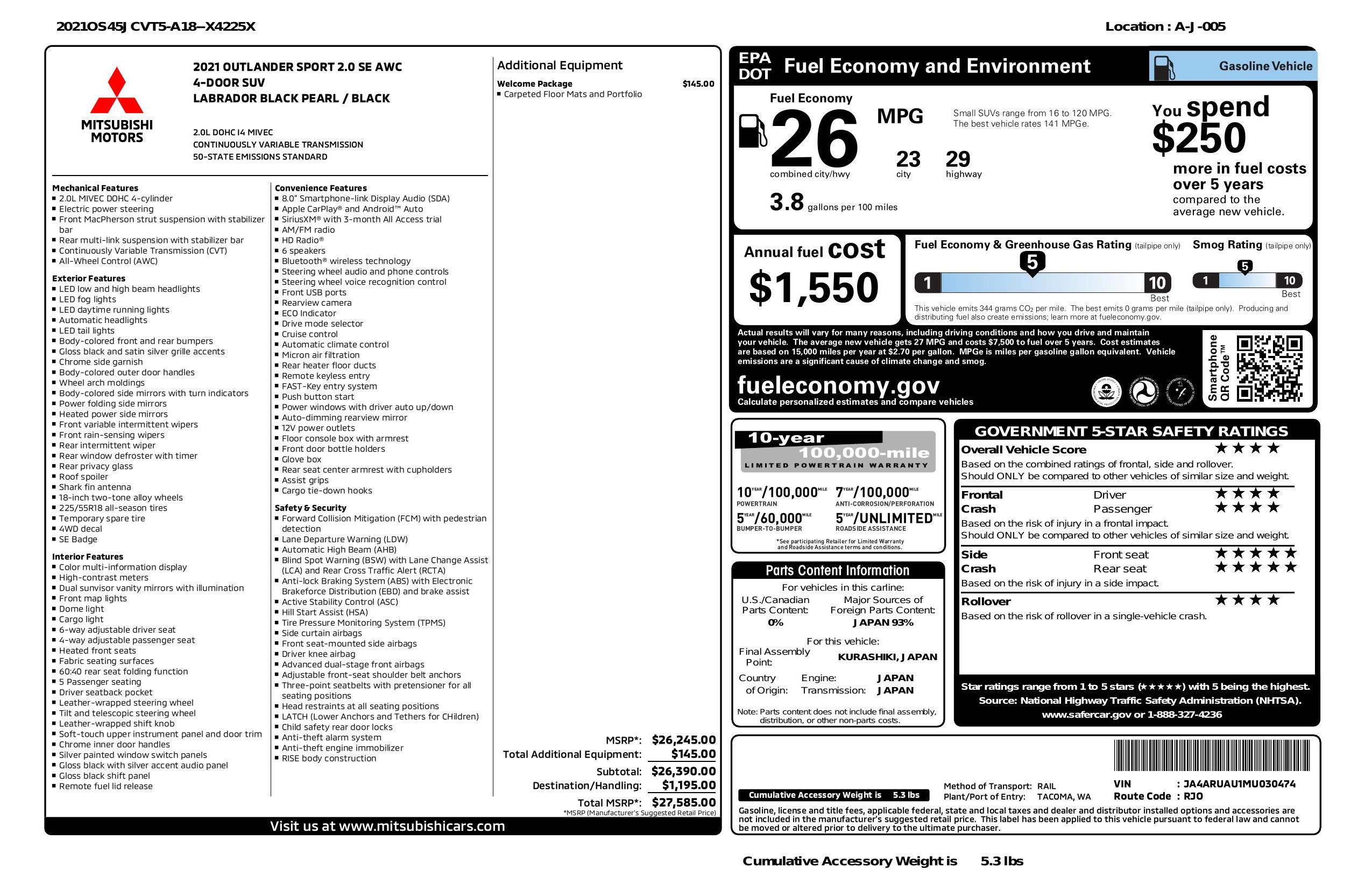 IMPORTANT NOTICE: The vehicle described above is a used vehicle. This Original Window Sticker was created by a third party vendor based on information set forth in the original new vehicle Monroney sticker. Dealer makes no representations or warranties, express or implied, as to the accuracy or reliability of the information in this window sticker, and is not responsible for any errors or omissions or missing, damaged, removed or third-party installed equipment/options. For current vehicle features and price, please review the Enterprise Car Sales website, the Used Car Buyer’s Guide and/or discuss with your Enterprise Car Sales dealership.