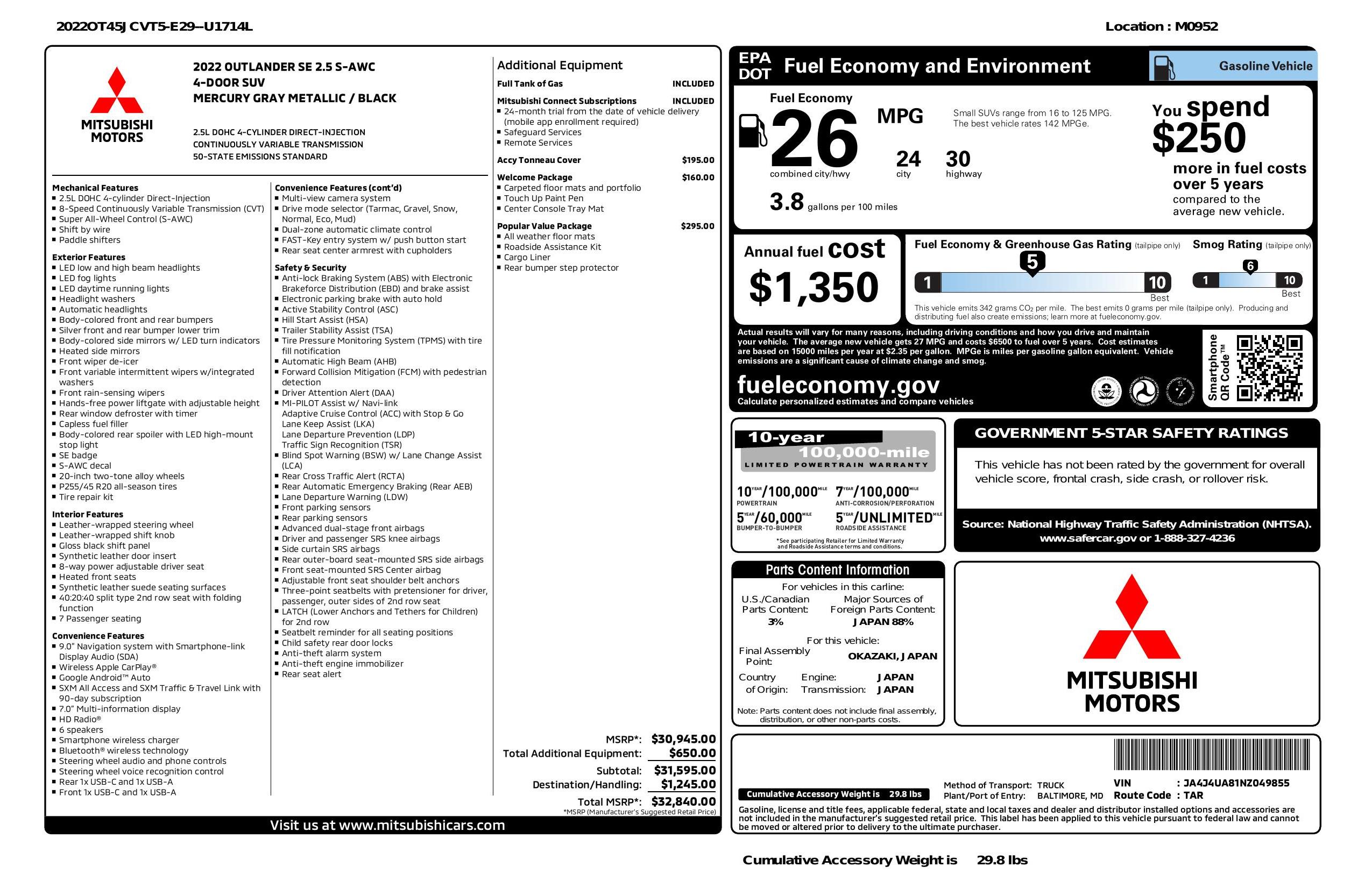 2022 Mitsubishi Outlander S Awc