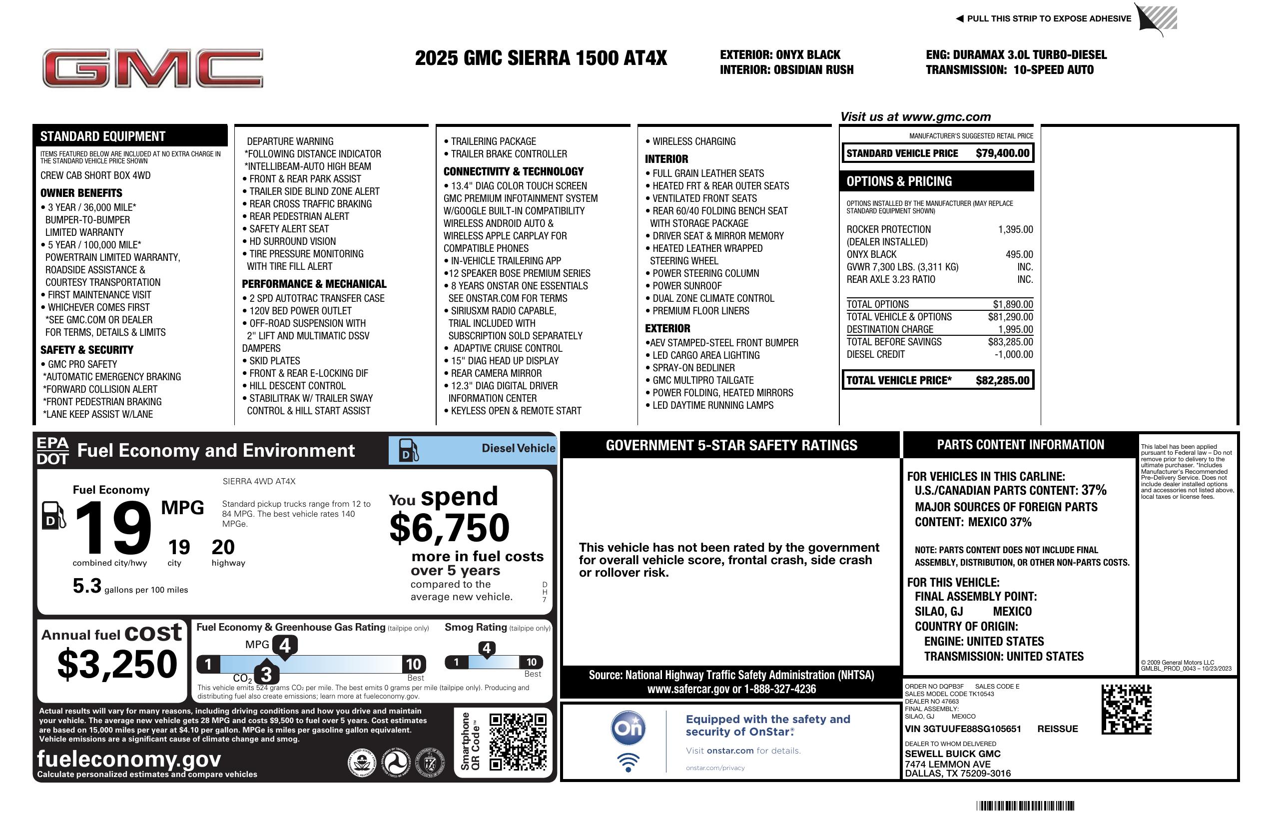2025 GMC Sierra 1500 4 Wd Crew Cab 147" At4 X