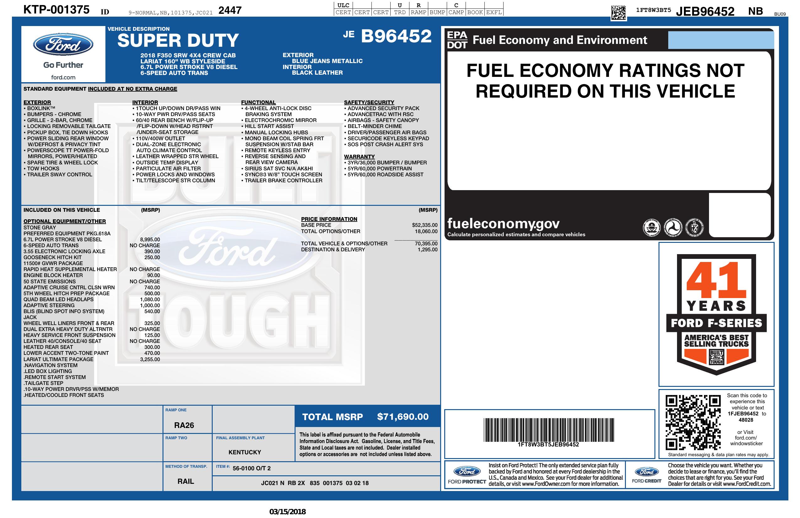 2018 Ford Super Duty F 350 Srw 4x4 Lariat 4dr Crew Cab 6.8 Ft. Sb Srw Pickup