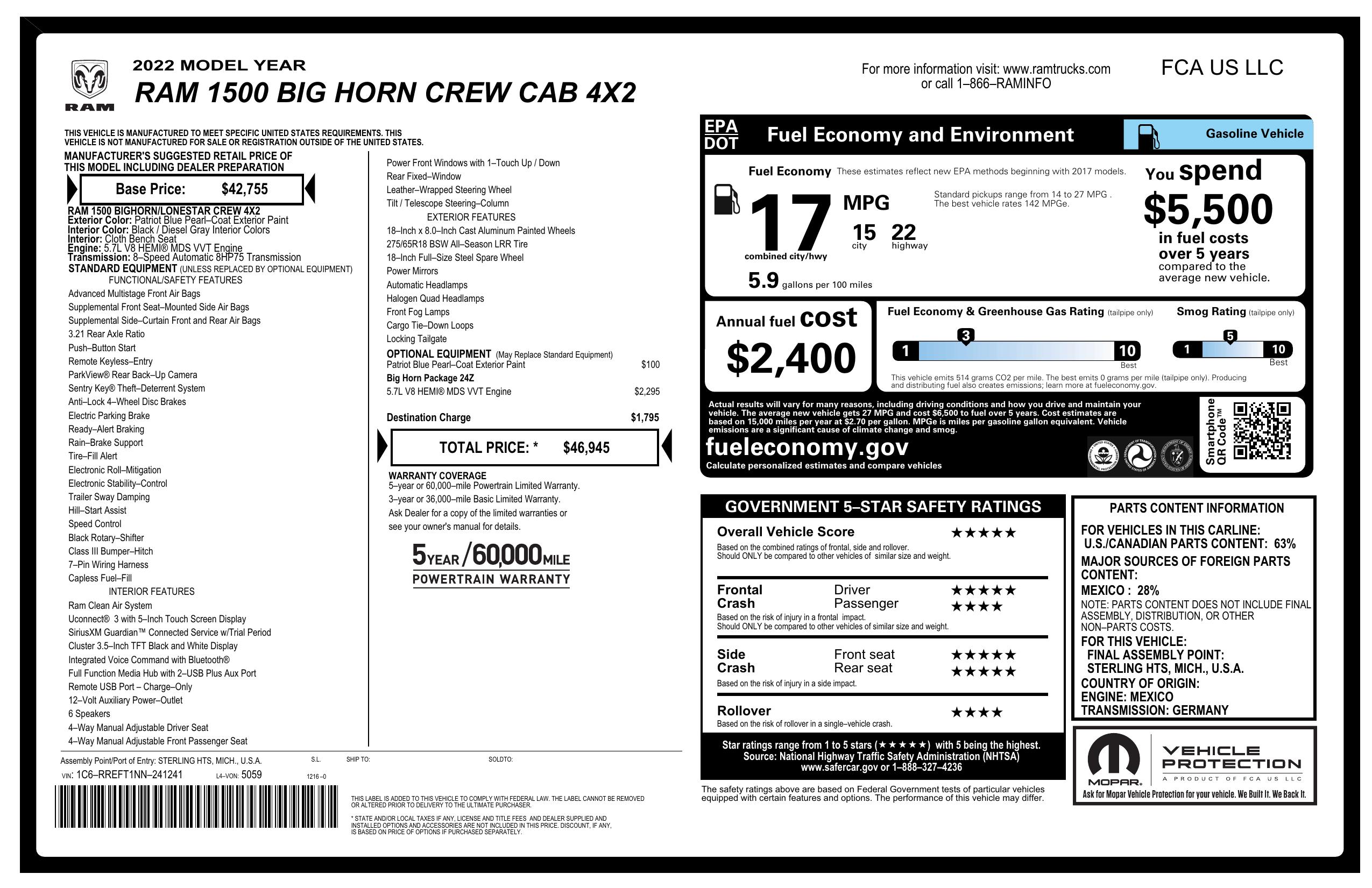 2022 Ram 1500 Big Horn 4x2 Crew Cab 5'7" Box