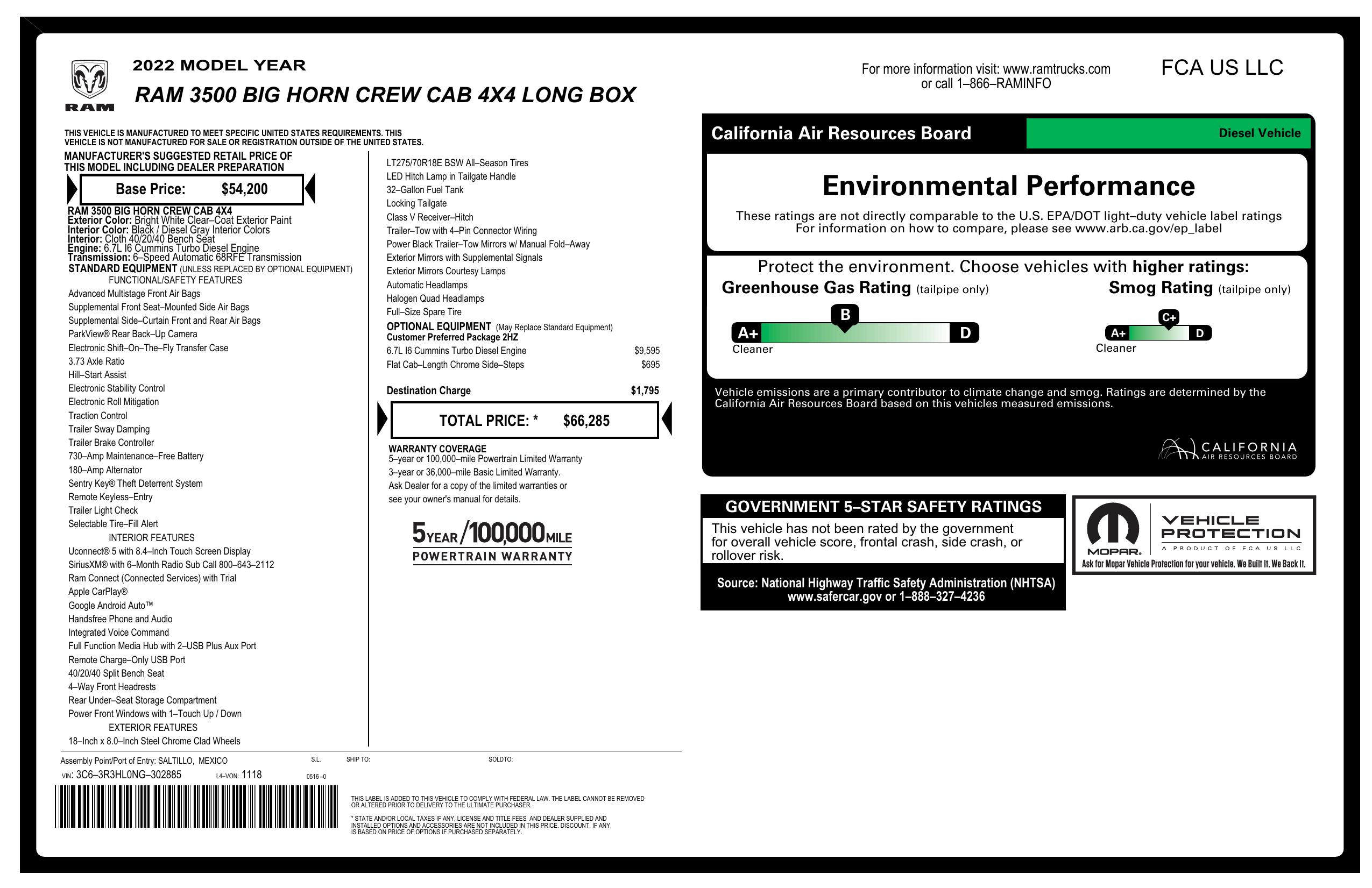 2022 Ram 3500 Big Horn 4x4 Crew Cab 8' Box