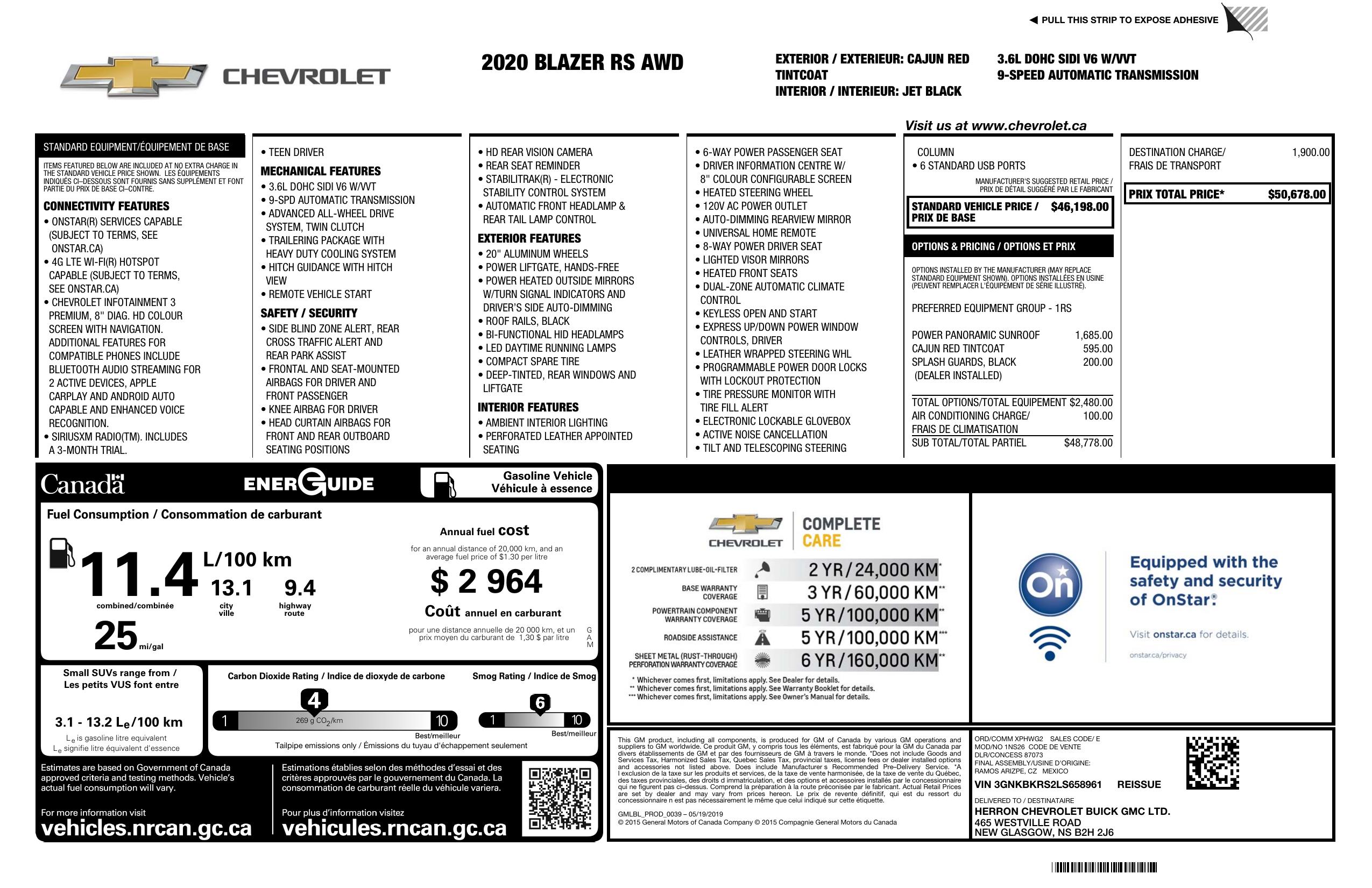 2020 Chevrolet Blazer Awd 4dr Rs