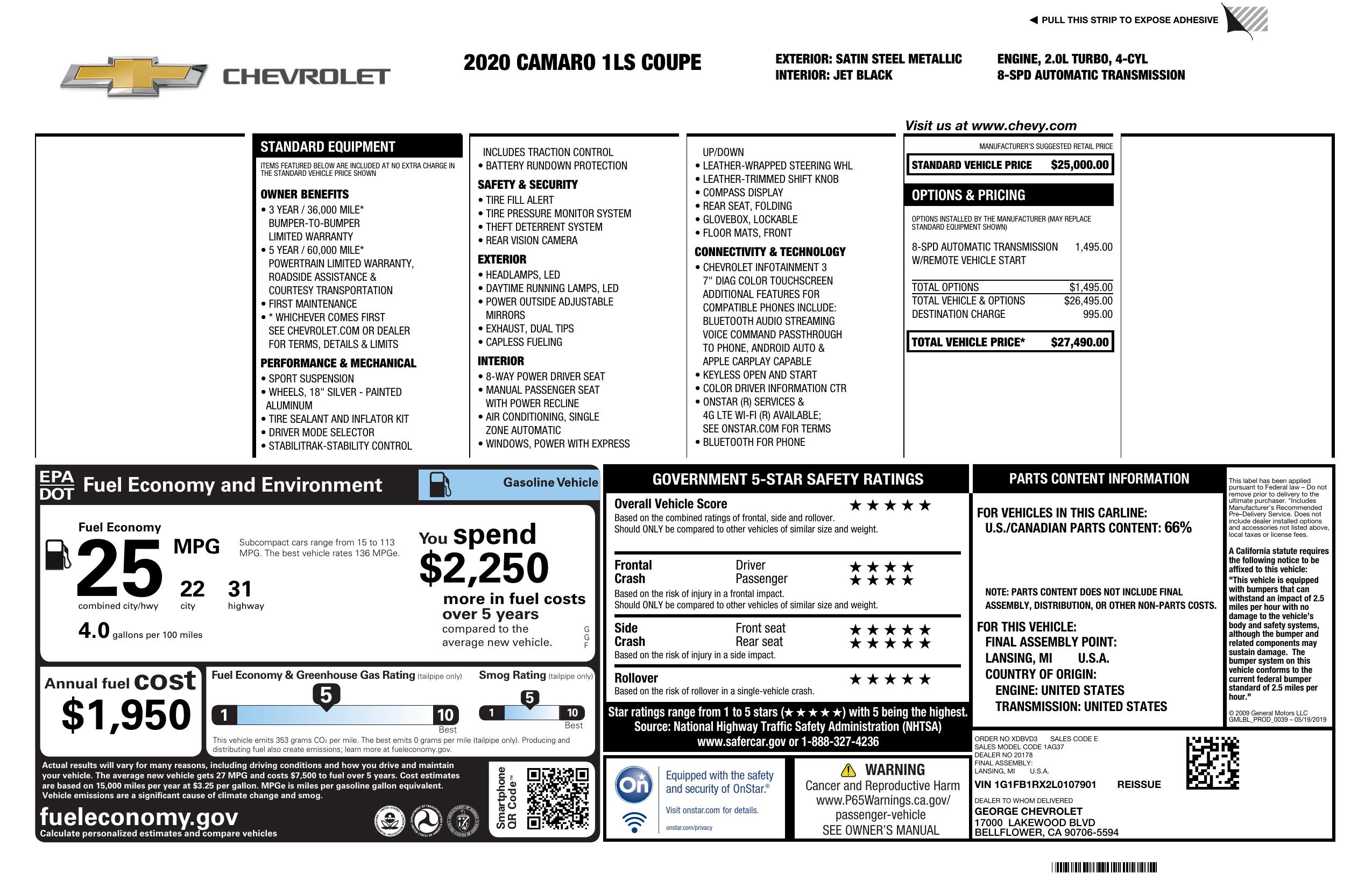 2020 Chevrolet Camaro 2dr Cpe 1 Ls