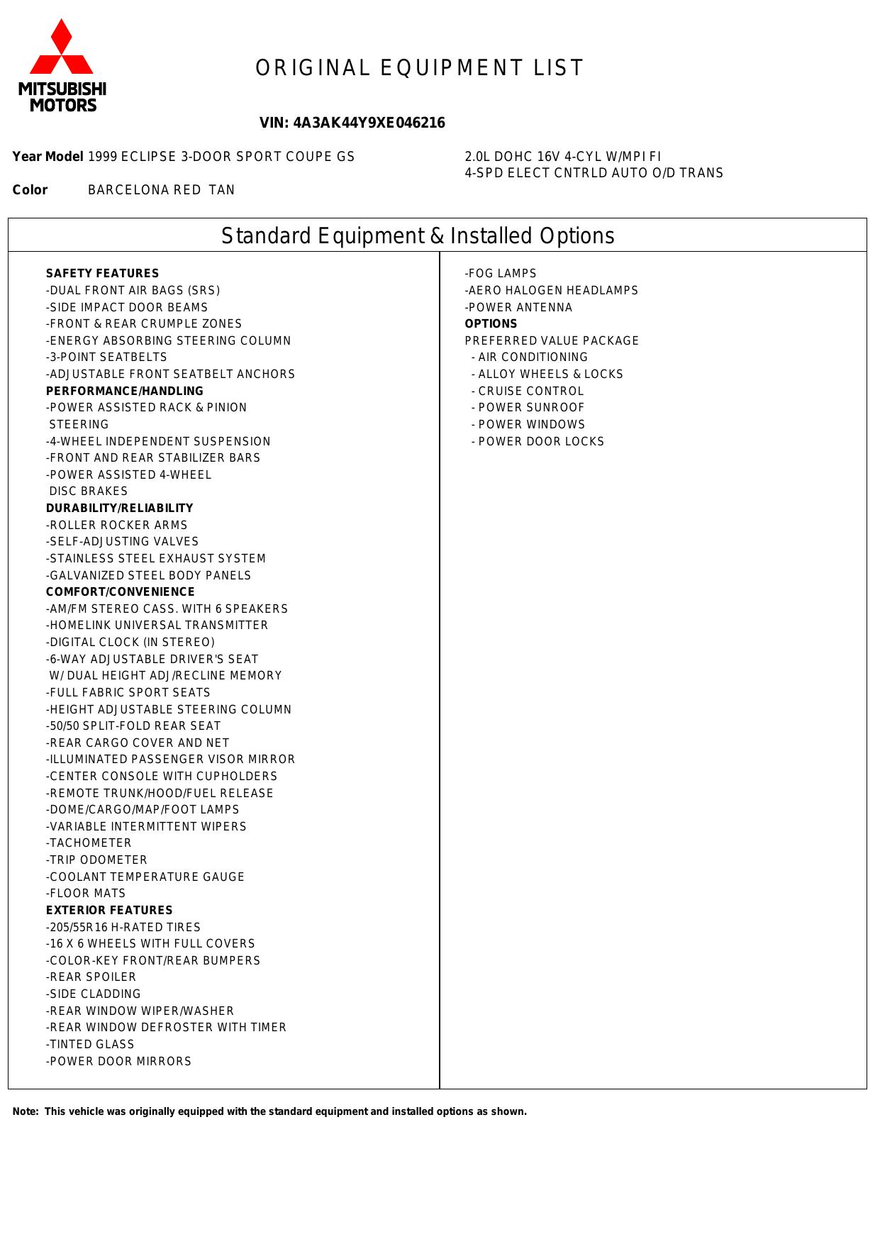 1999 Mitsubishi Eclipse 3dr Cpe Gs