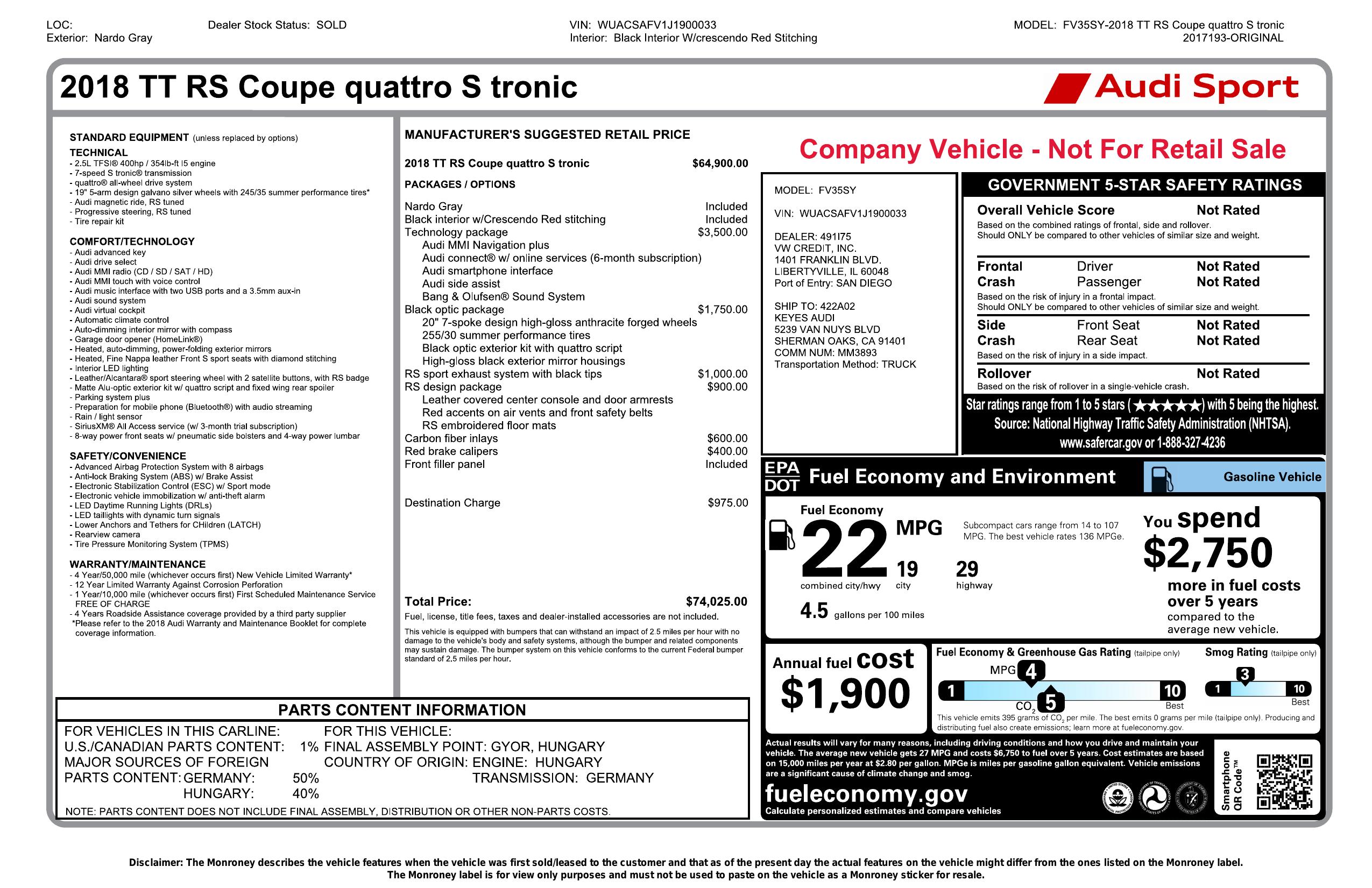 2018 Audi Tt Rs Rs Coupe 2 D