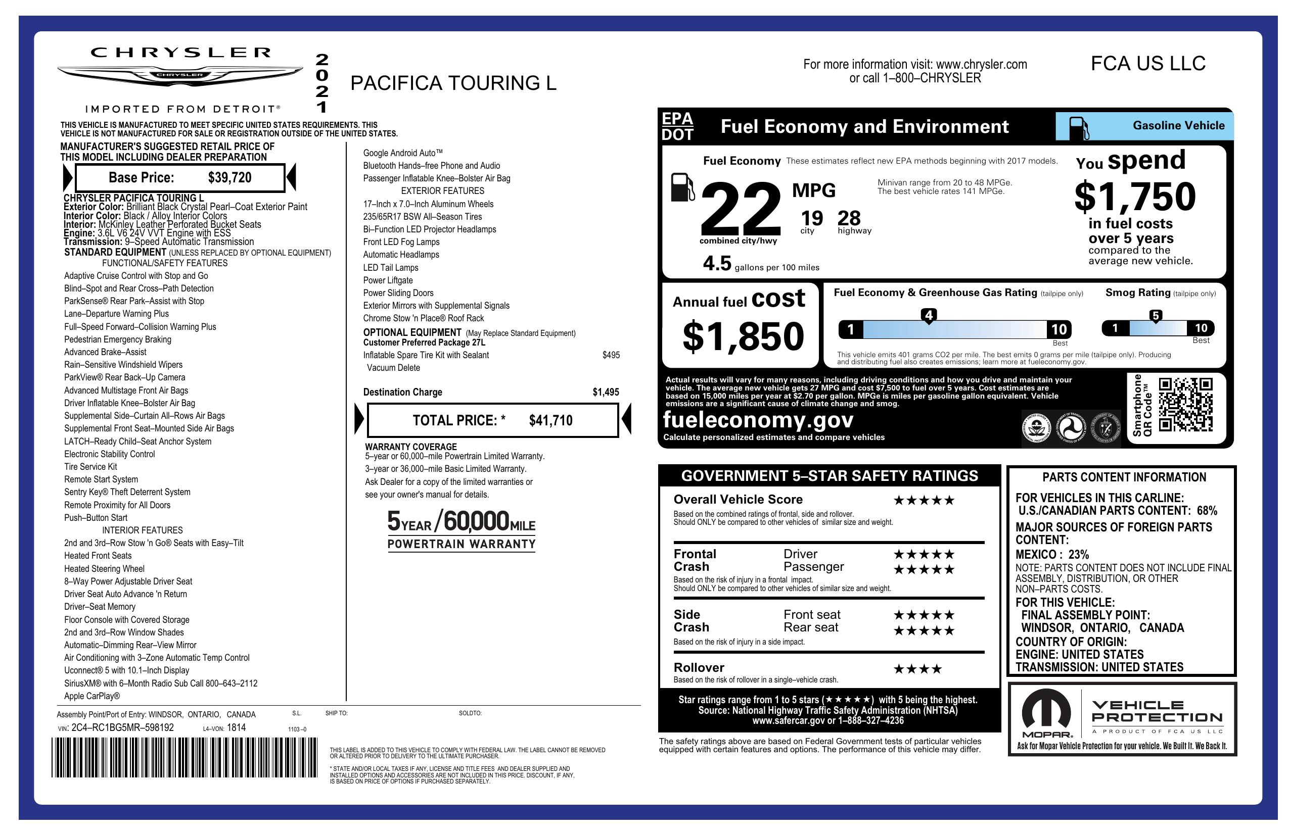 IMPORTANT NOTICE: The vehicle described above is a used vehicle. This Original Window Sticker was created by a third party vendor based on information set forth in the original new vehicle Monroney sticker. Dealer makes no representations or warranties, express or implied, as to the accuracy or reliability of the information in this window sticker, and is not responsible for any errors or omissions or missing, damaged, removed or third-party installed equipment/options. For current vehicle features and price, please review the Enterprise Car Sales website, the Used Car Buyer’s Guide and/or discuss with your Enterprise Car Sales dealership.
