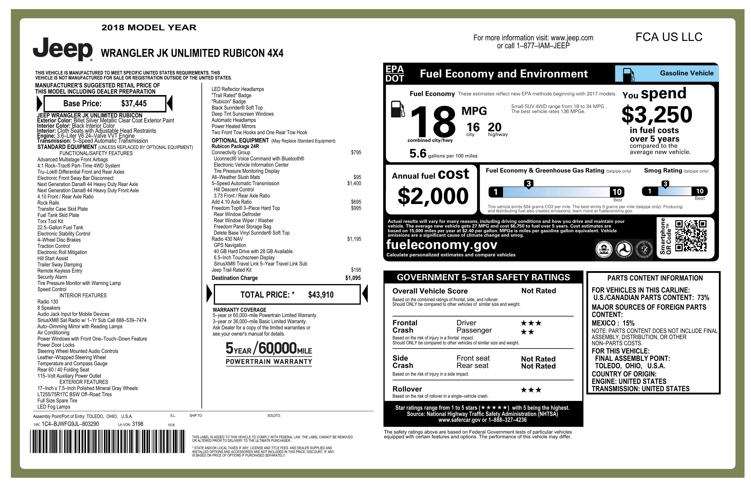 2018 Jeep Wrangler Jk Unlimited Rubicon 4x4