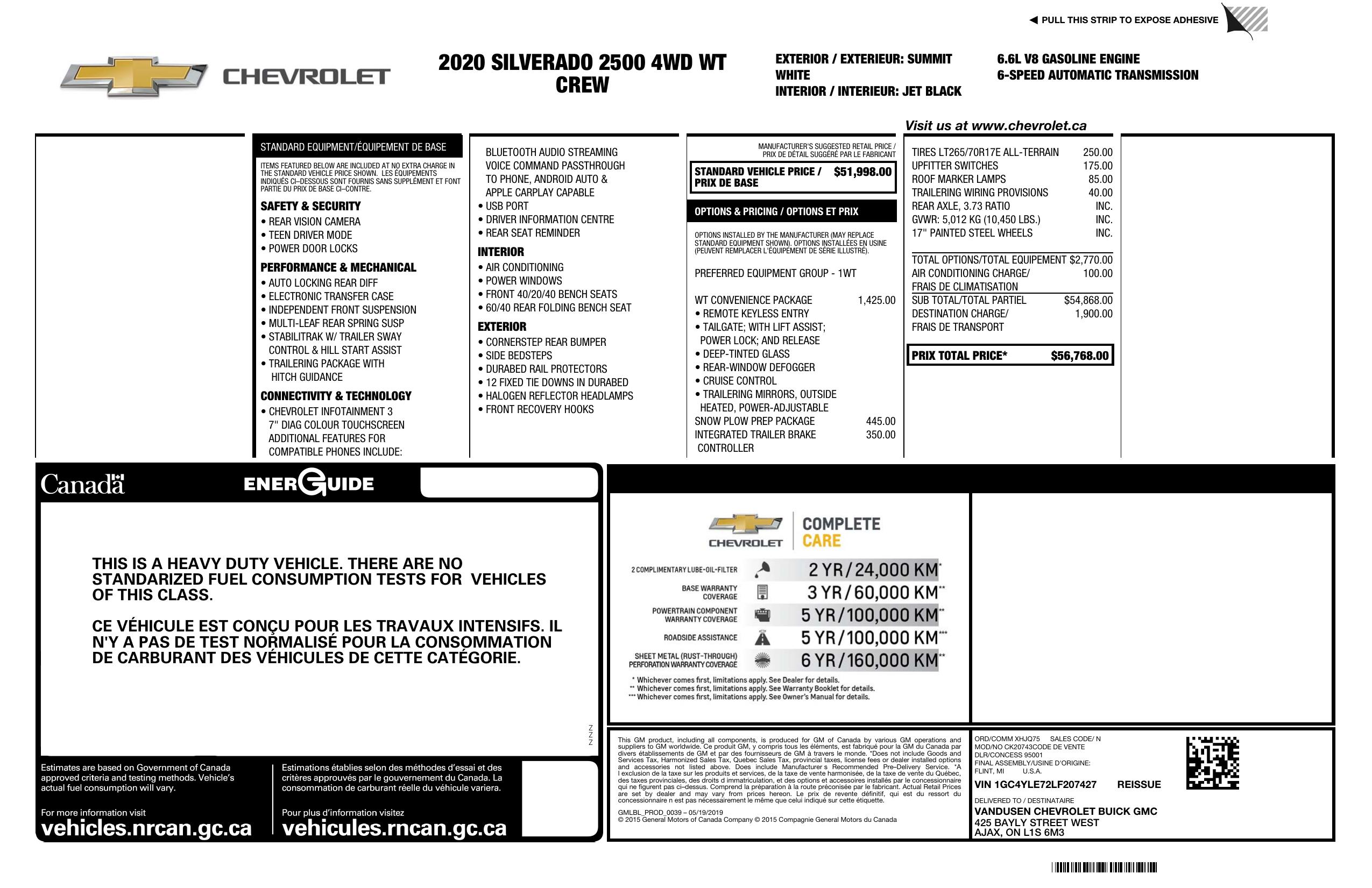 2020 Chevrolet Silverado 2500 Hd 4 Wd Crew Cab Work Truck