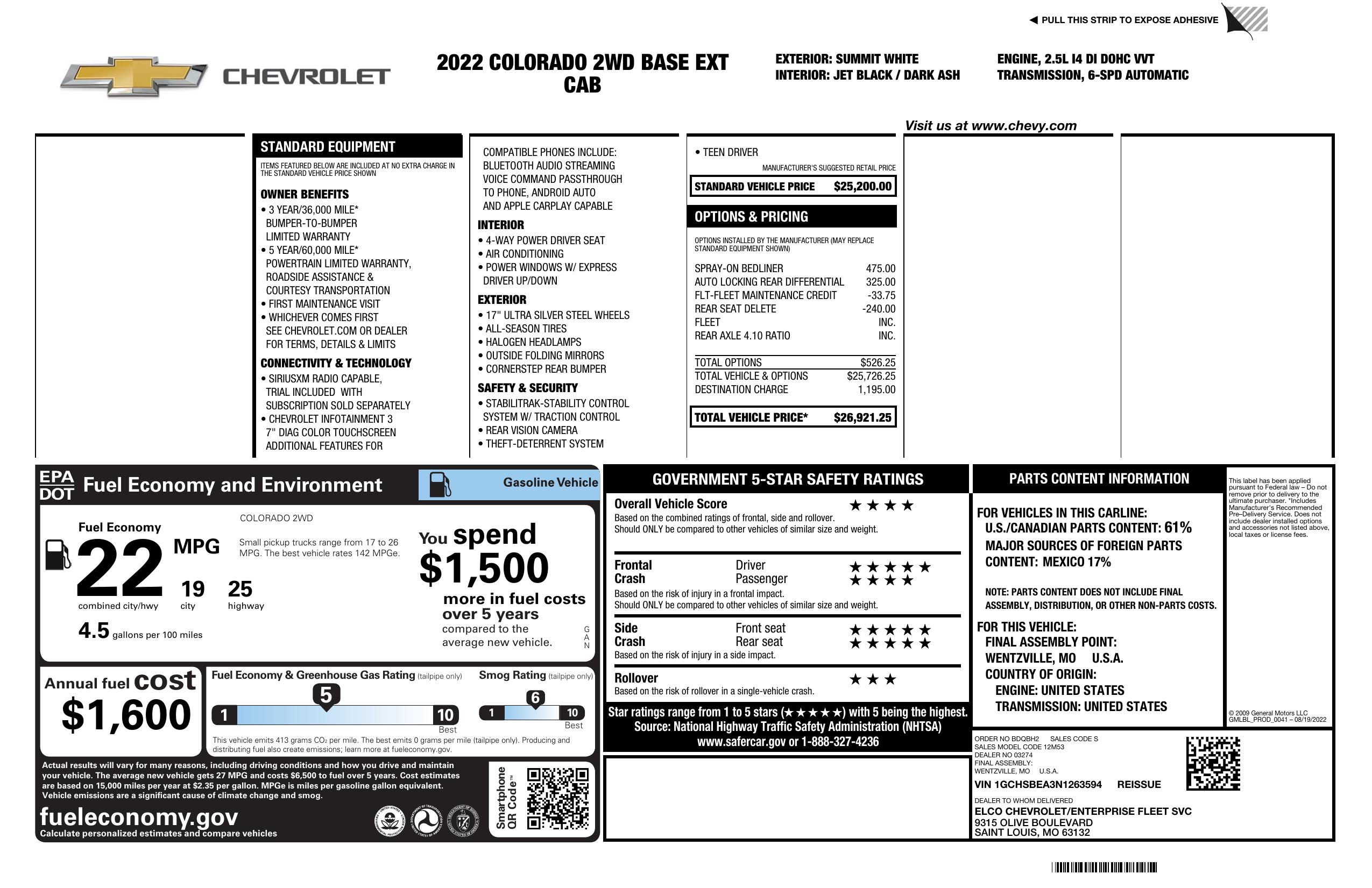 IMPORTANT NOTICE: The vehicle described above is a used vehicle. This Original Window Sticker was created by a third party vendor based on information set forth in the original new vehicle Monroney sticker. Dealer makes no representations or warranties, express or implied, as to the accuracy or reliability of the information in this window sticker, and is not responsible for any errors or omissions or missing, damaged, removed or third-party installed equipment/options. For current vehicle features and price, please review the Enterprise Car Sales website, the Used Car Buyer’s Guide and/or discuss with your Enterprise Car Sales dealership.