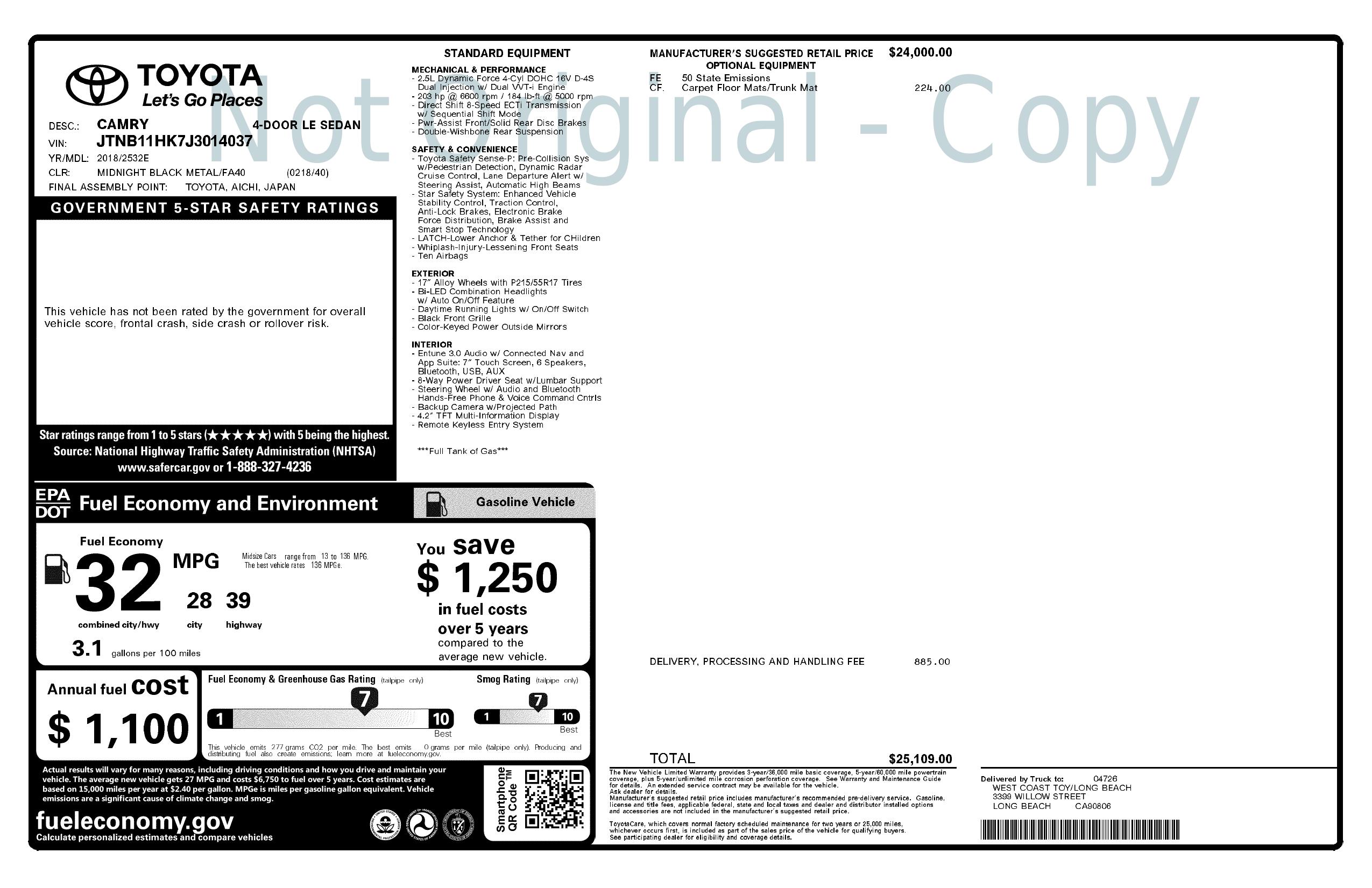 2018 Toyota Camry Auto (Natl)