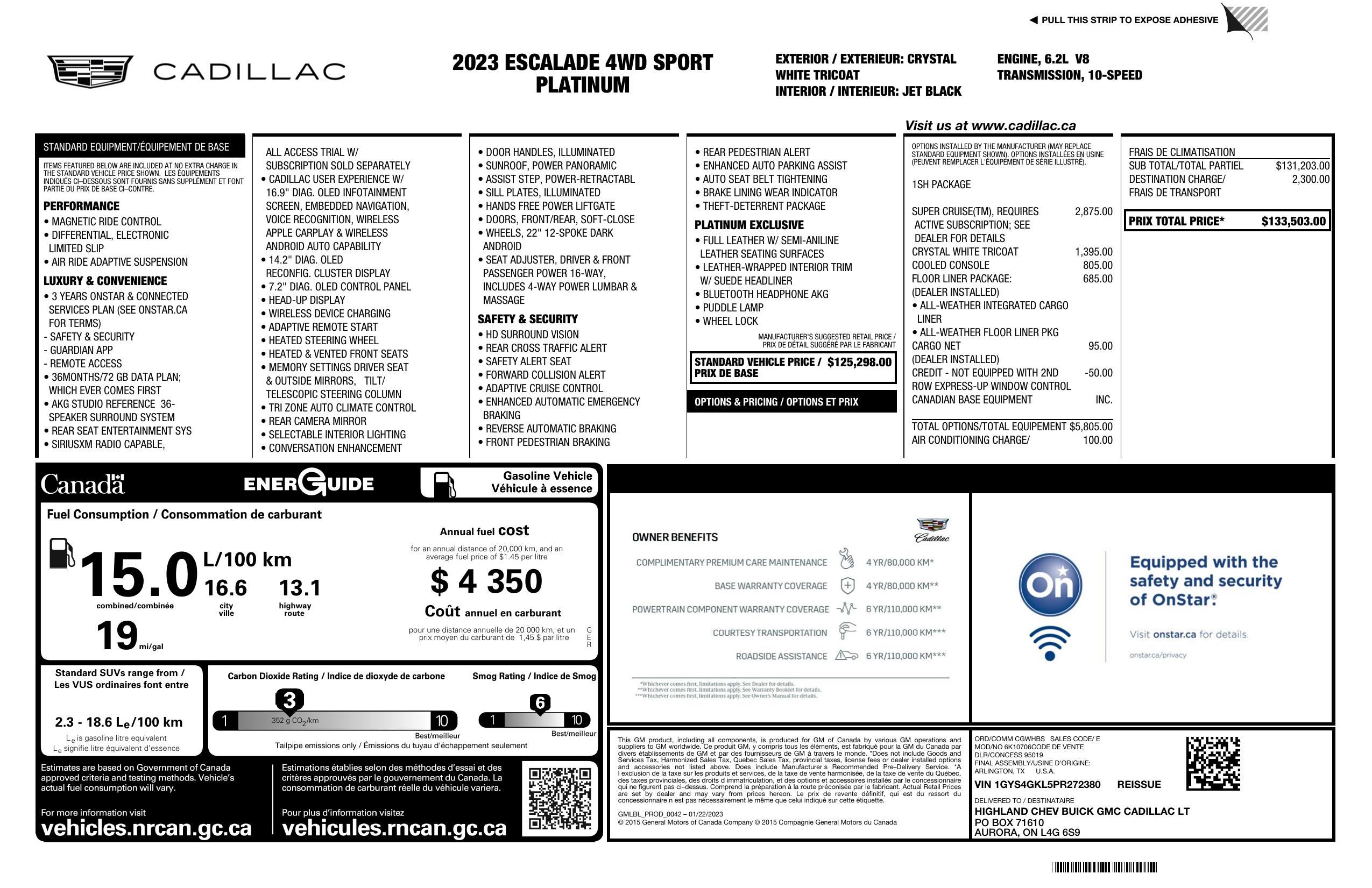 2023 Cadillac Escalade 4 Wd 4dr Sport Platinum