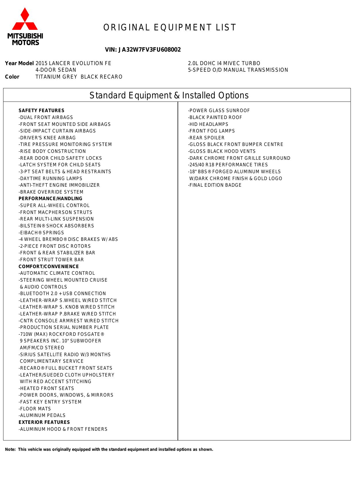 2015 Mitsubishi Lancer Evolution 4dr Sdn Man Final Edition