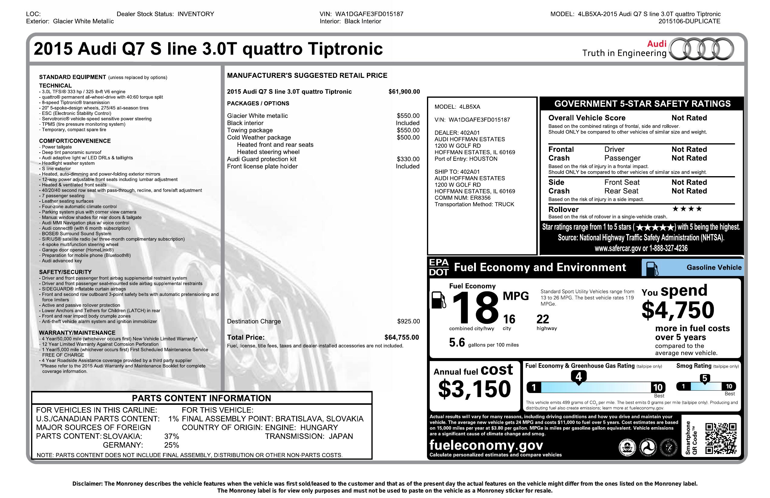2015 Audi Q7 Quattro 4dr 3.0 T S Line Prestige
