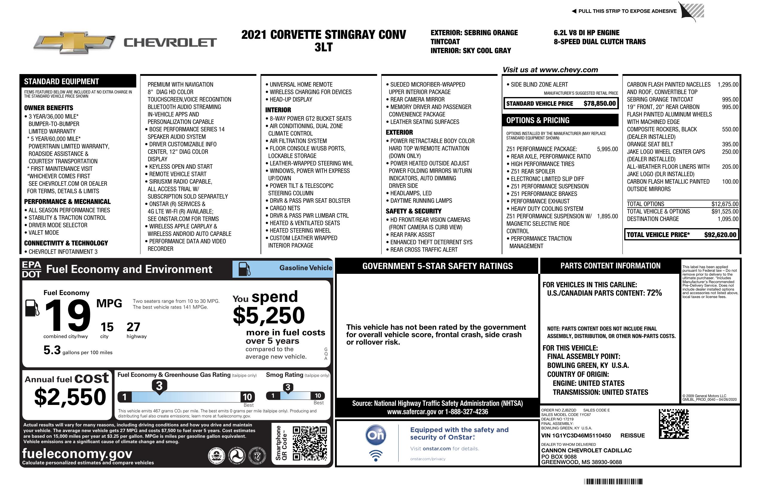 2021 Chevrolet Corvette 2dr Stingray Conv W/3 Lt