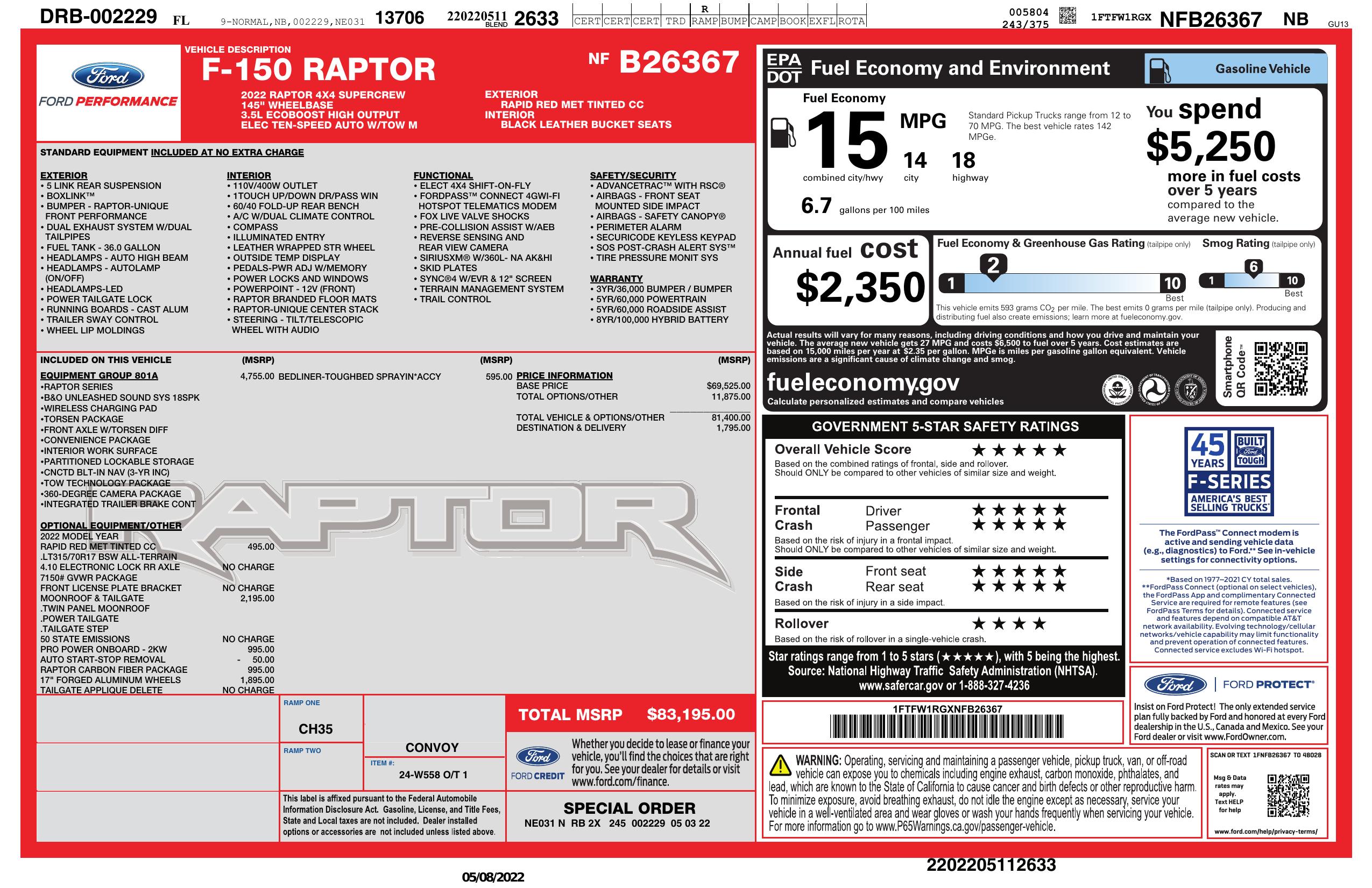 2022 Ford F 150 Raptor 4 Wd Super Crew 5.5' Box