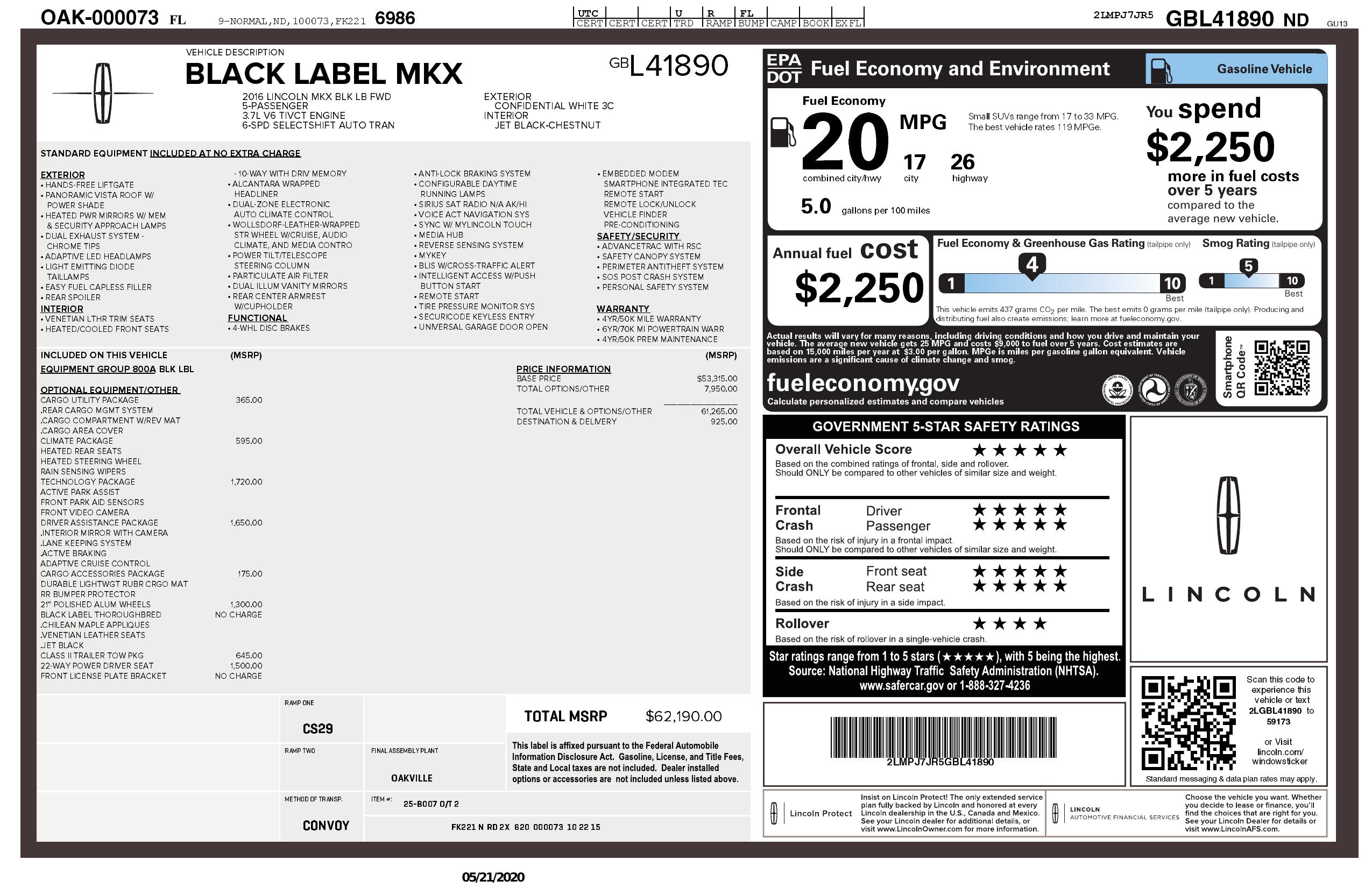 2016 Lincoln Mkx Fwd 4dr Black Label