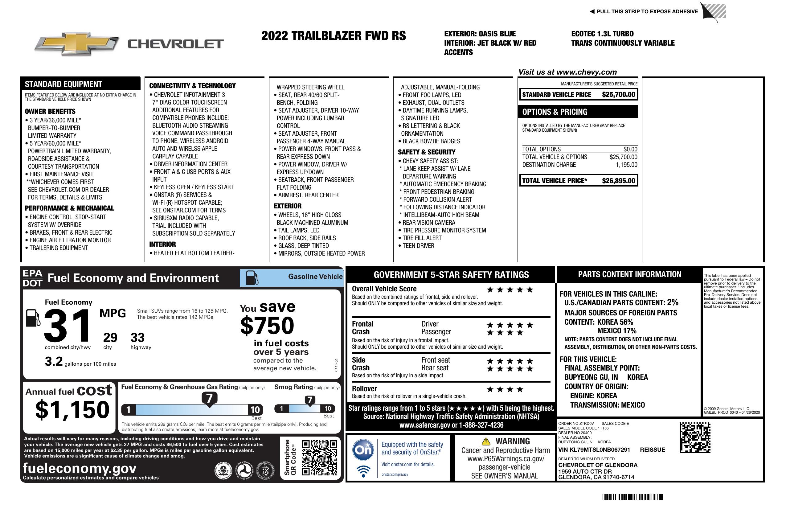 2022 Chevrolet Trailblazer Fwd 4dr Rs