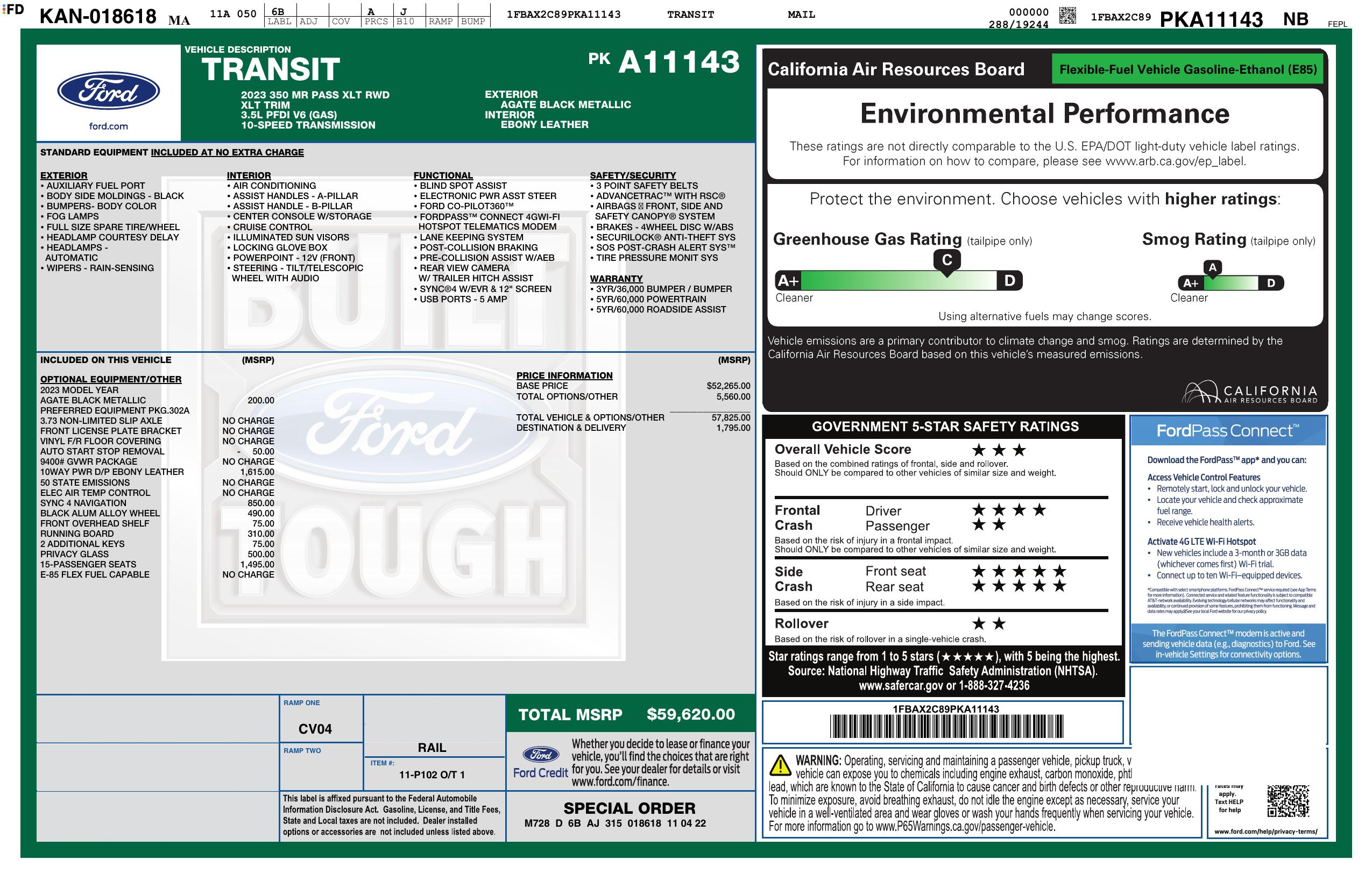 2023 Ford Transit Passenger Wagon T 350 148" Med Roof Rwd