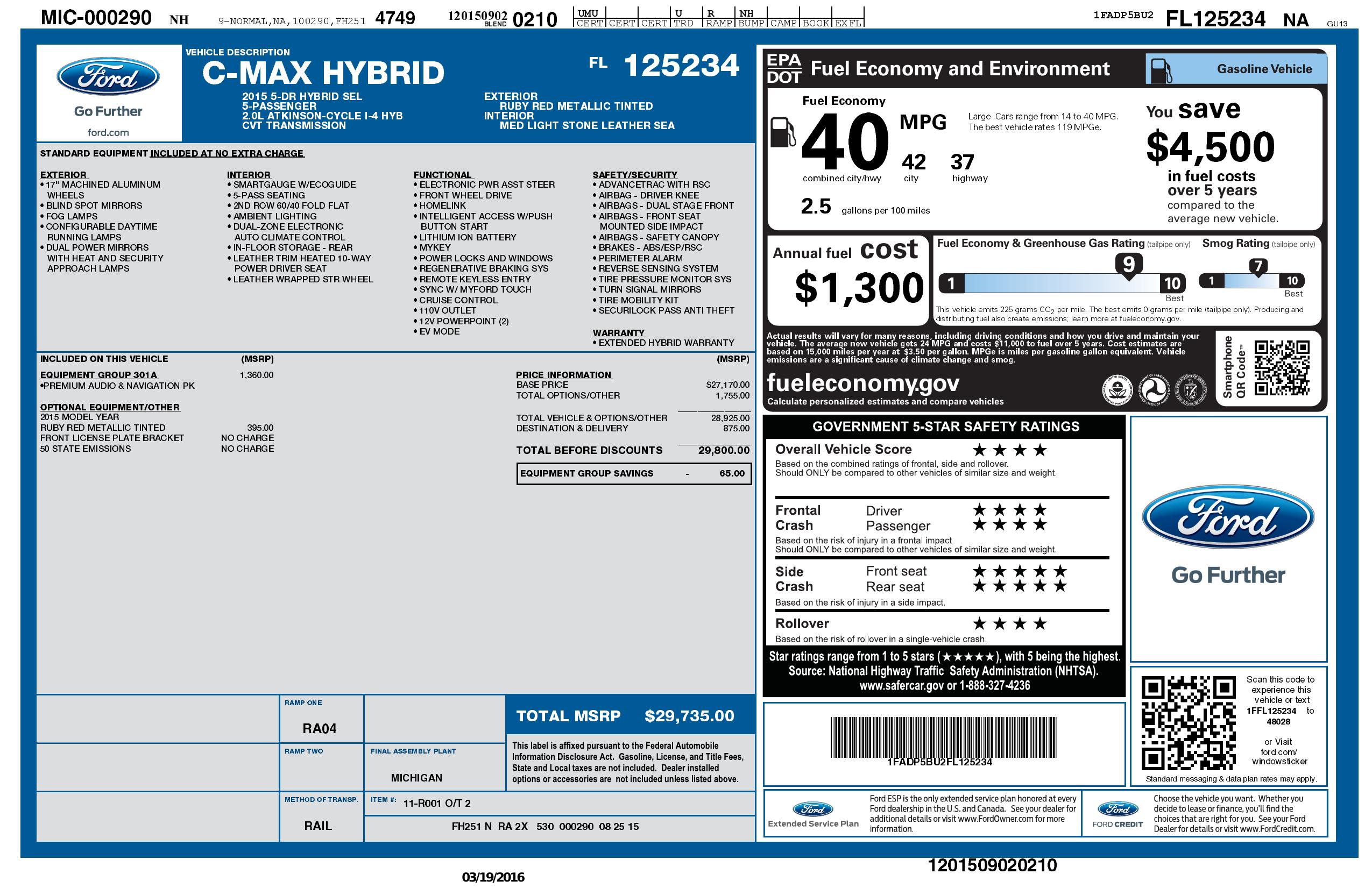 2015 Ford C Max Hybrid Sel 4dr Wagon
