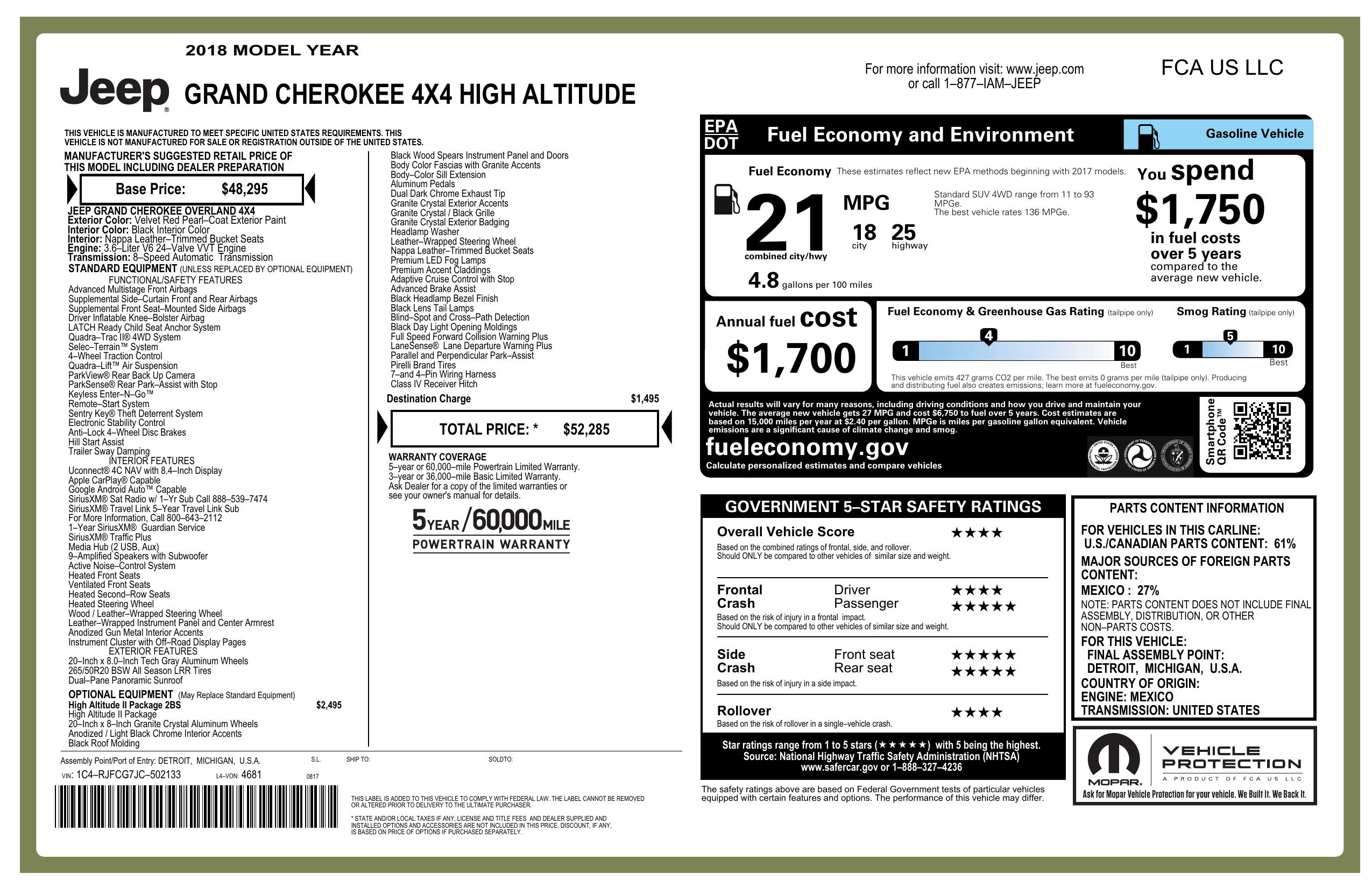 2018 Jeep Grand Cherokee High Altitude 4x4 *Ltd Avail*